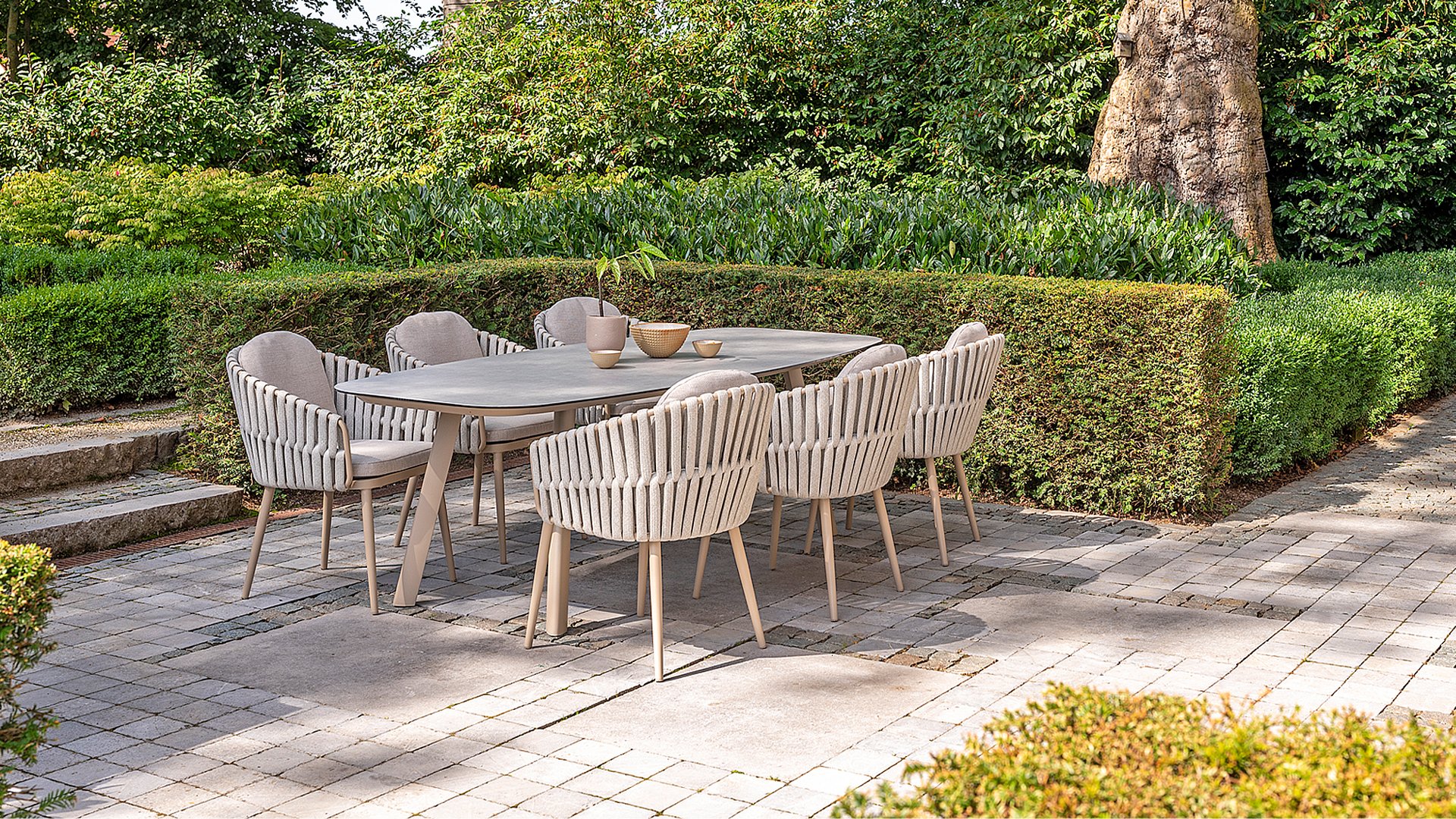 This beautiful material is perfect for outdoor use, because Taste Rope isn't just any shoelace. Taste uses very high-quality rope made from 100% SDP (Solution Dyed Polypropylene). This material is extremely strong and has very little stretch. Polypropylene is oil-based, making it virtually impermeable to dirt and contaminants, just like our cushions. Taste offers exclusive designs using hand-woven rope patterns and techniques.