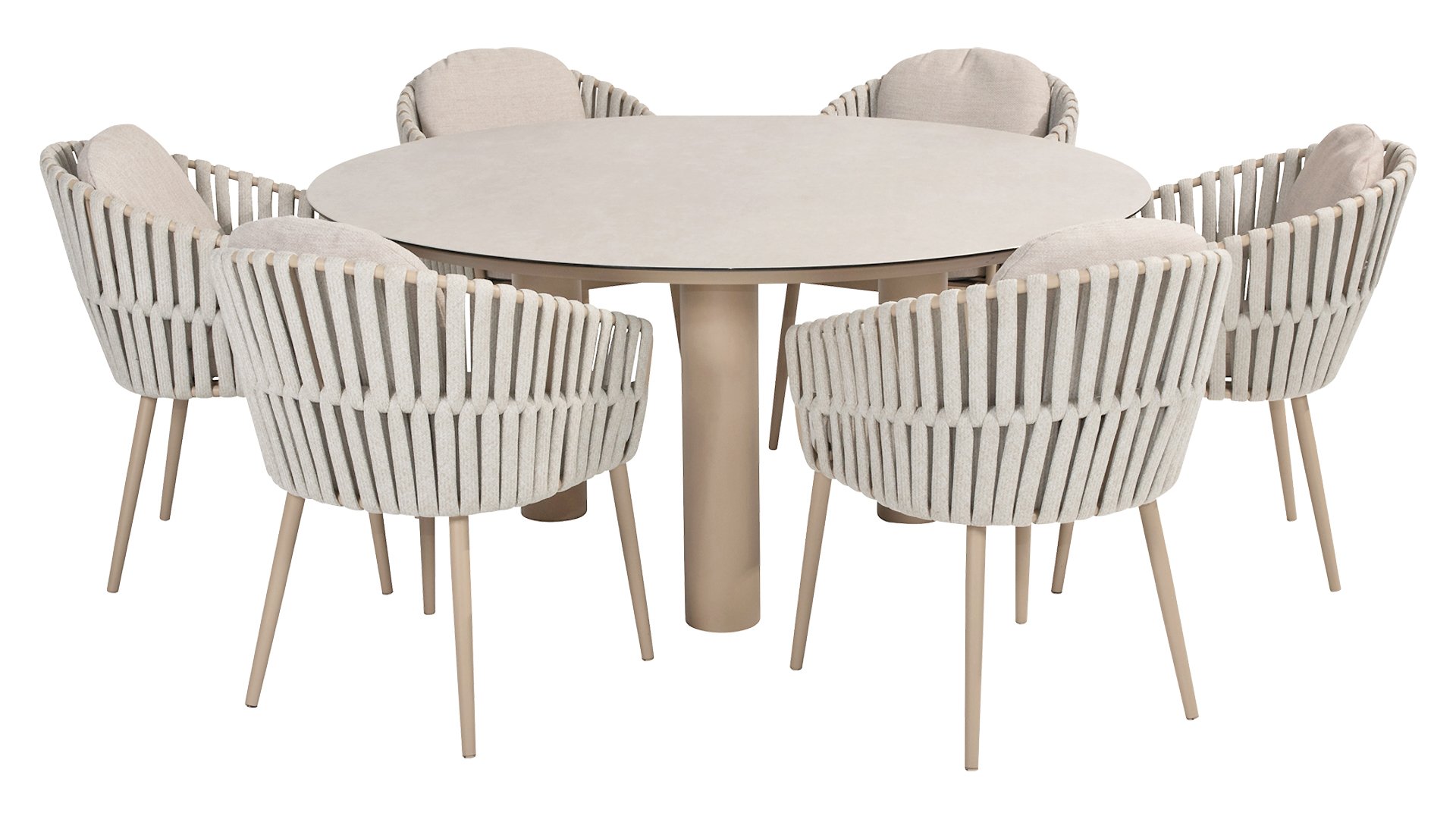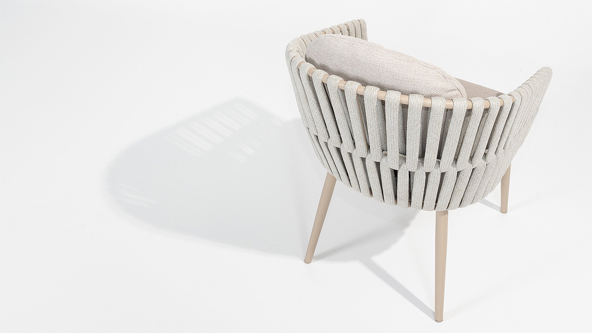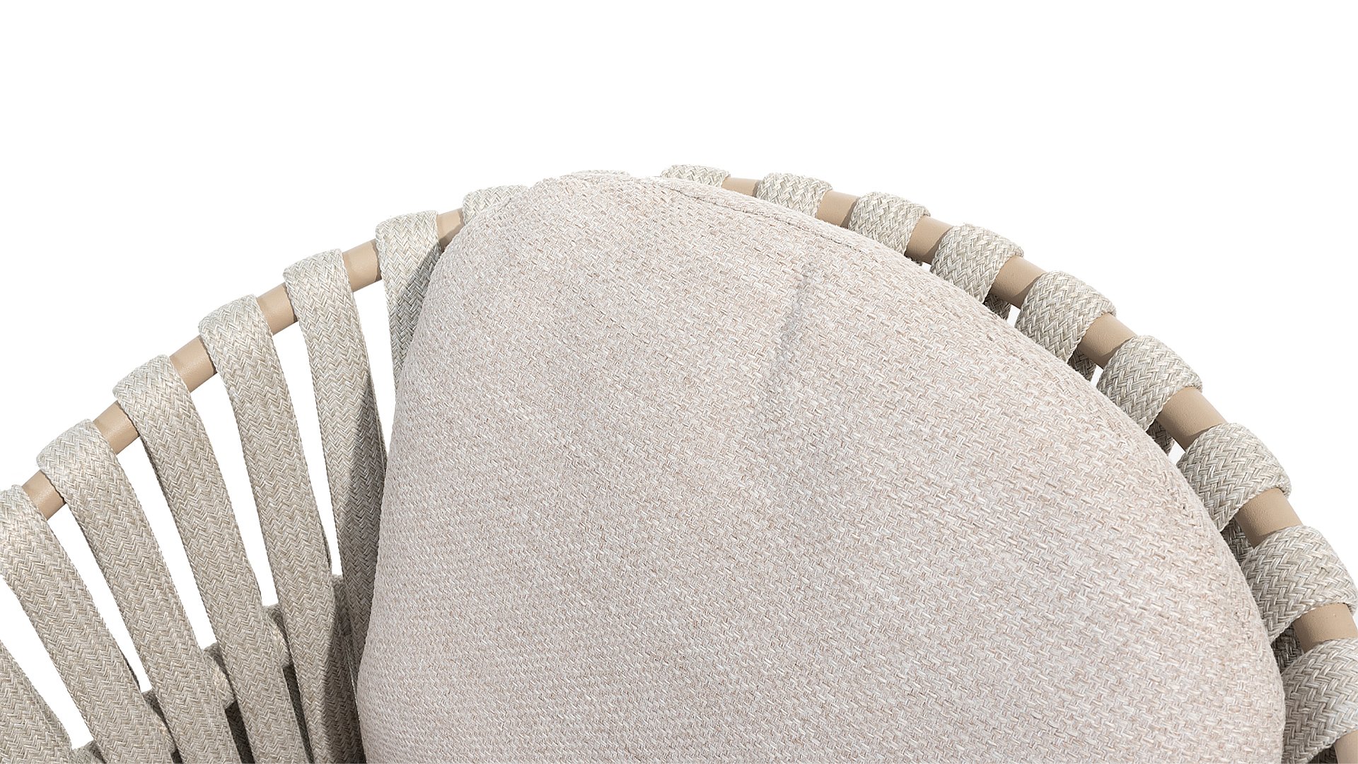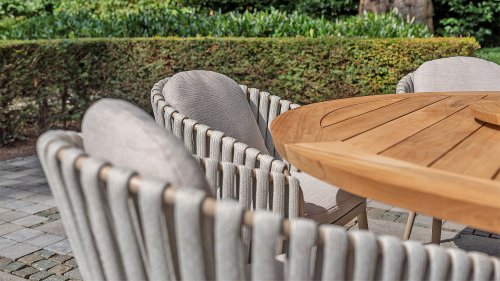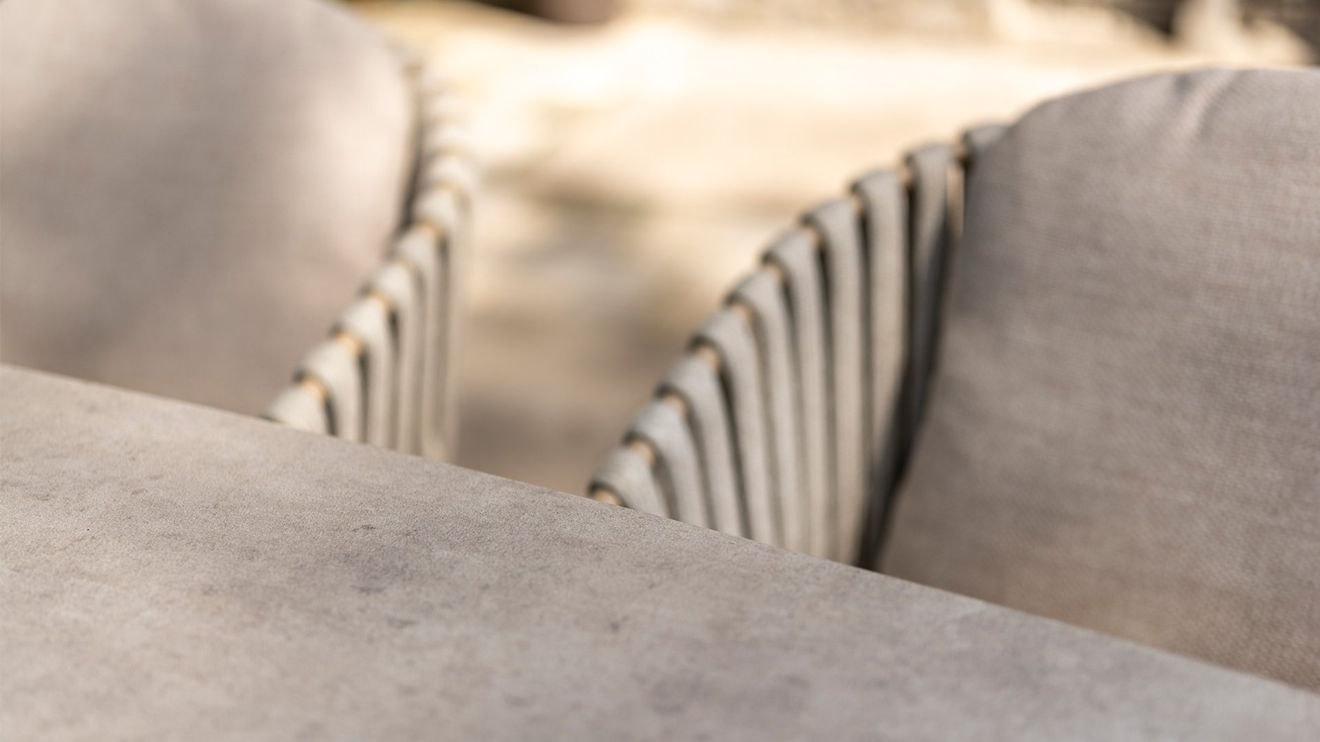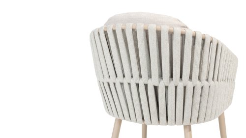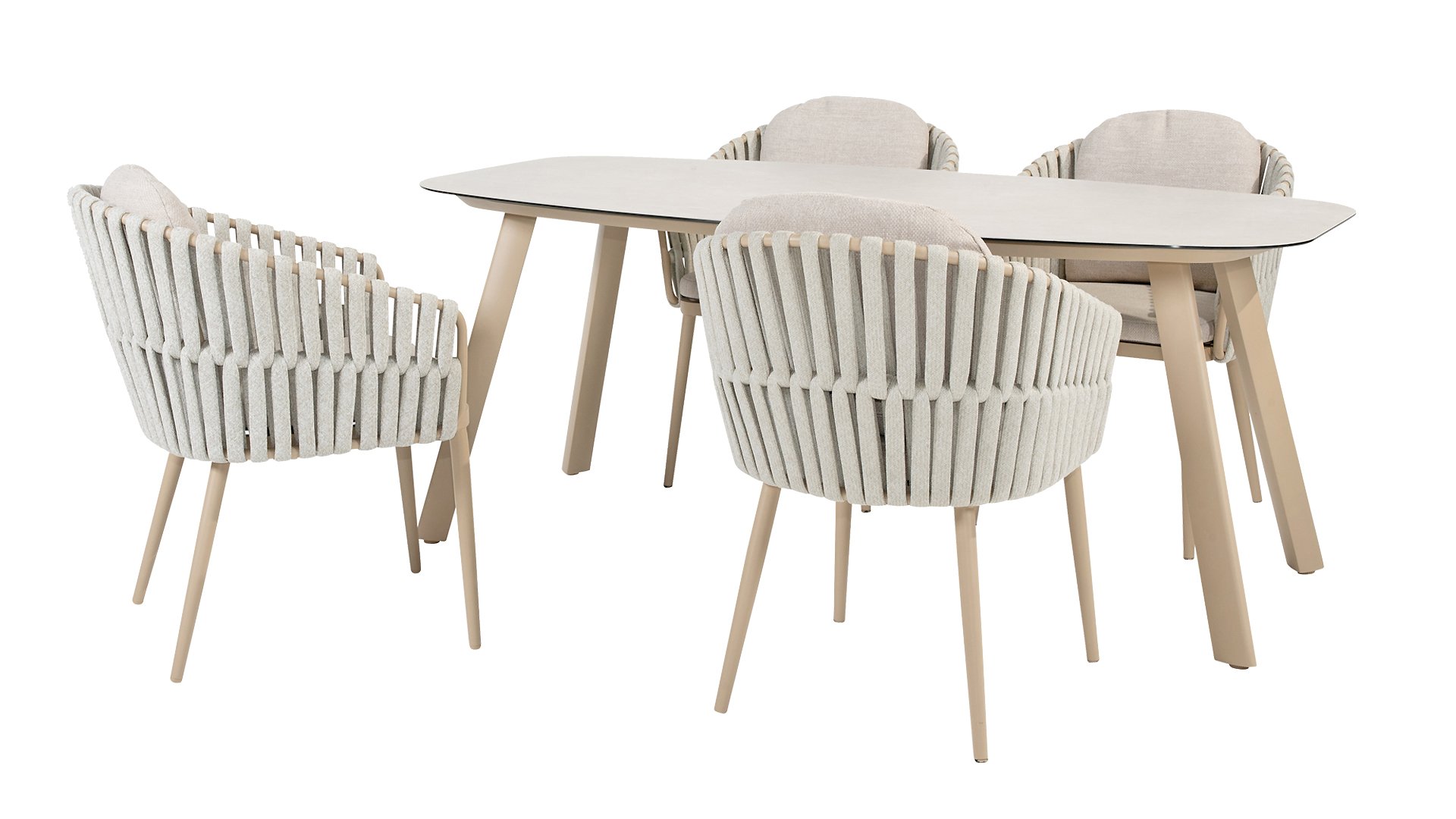 Passion for Eva Designed with an eye for detail. The thick, soft rope straps follow the beautiful organic shape of the frame. Add to that the delicious comfortable cushions and you'll understand why we are so enthusiastic about the Taste by 4 Seasons Outdoor Eva lounge & dining set. The Taste 4SO Eva dining chair has a modern appearance. The chair comes with soft cushions and has a contemporary aluminum frame with matching latte rope upholstery. The thick rope combines beautifully with the latte frame and, together with the cushions, provides comfortable seating. A color that can best be described as tasteful beige.