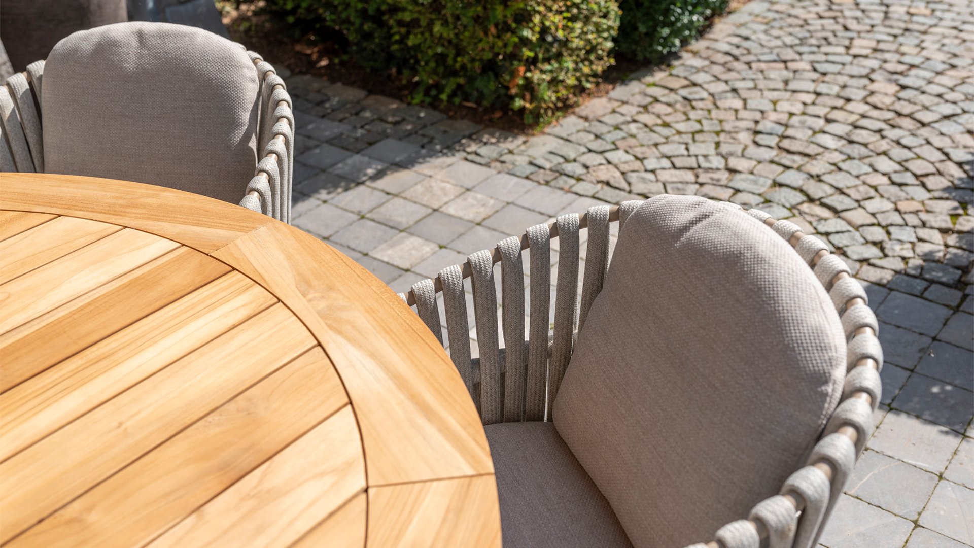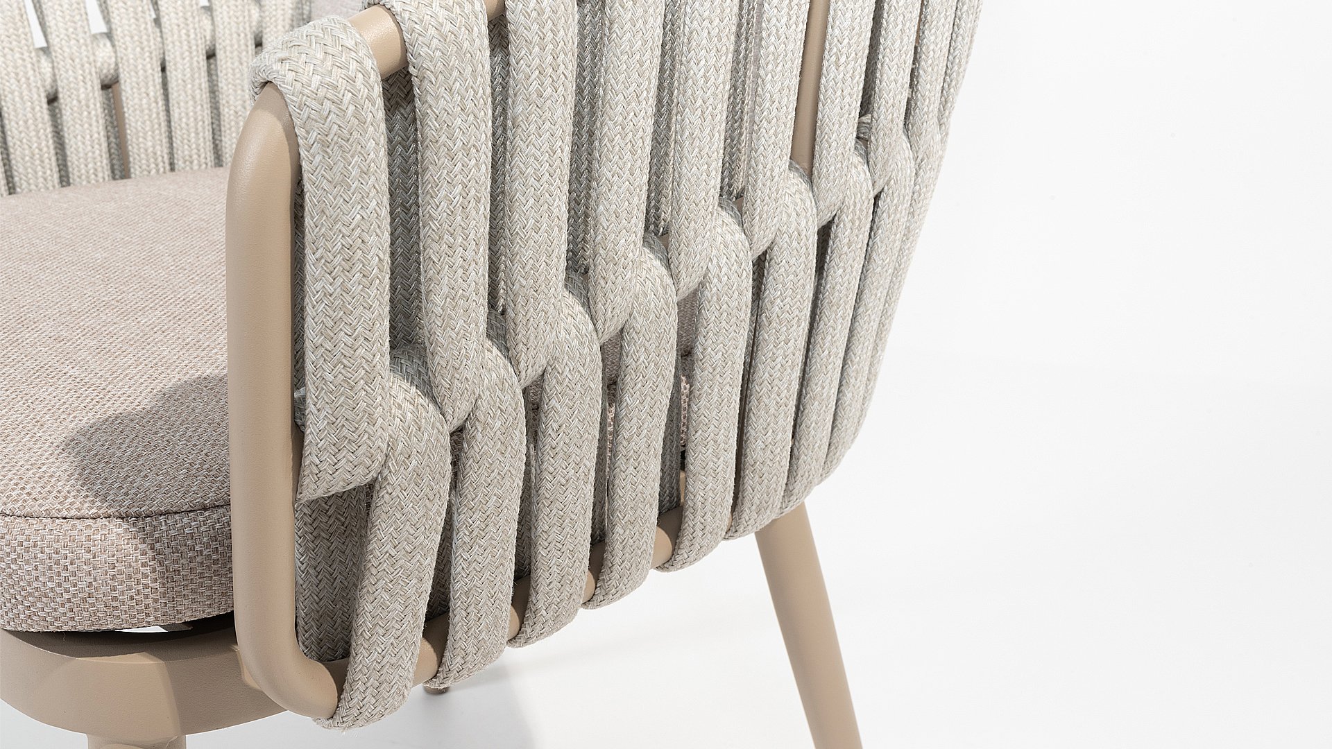 - Natural look: The latte rope upholstery gives the chair a natural, warm, and friendly look, perfect for a relaxed outdoor environment.