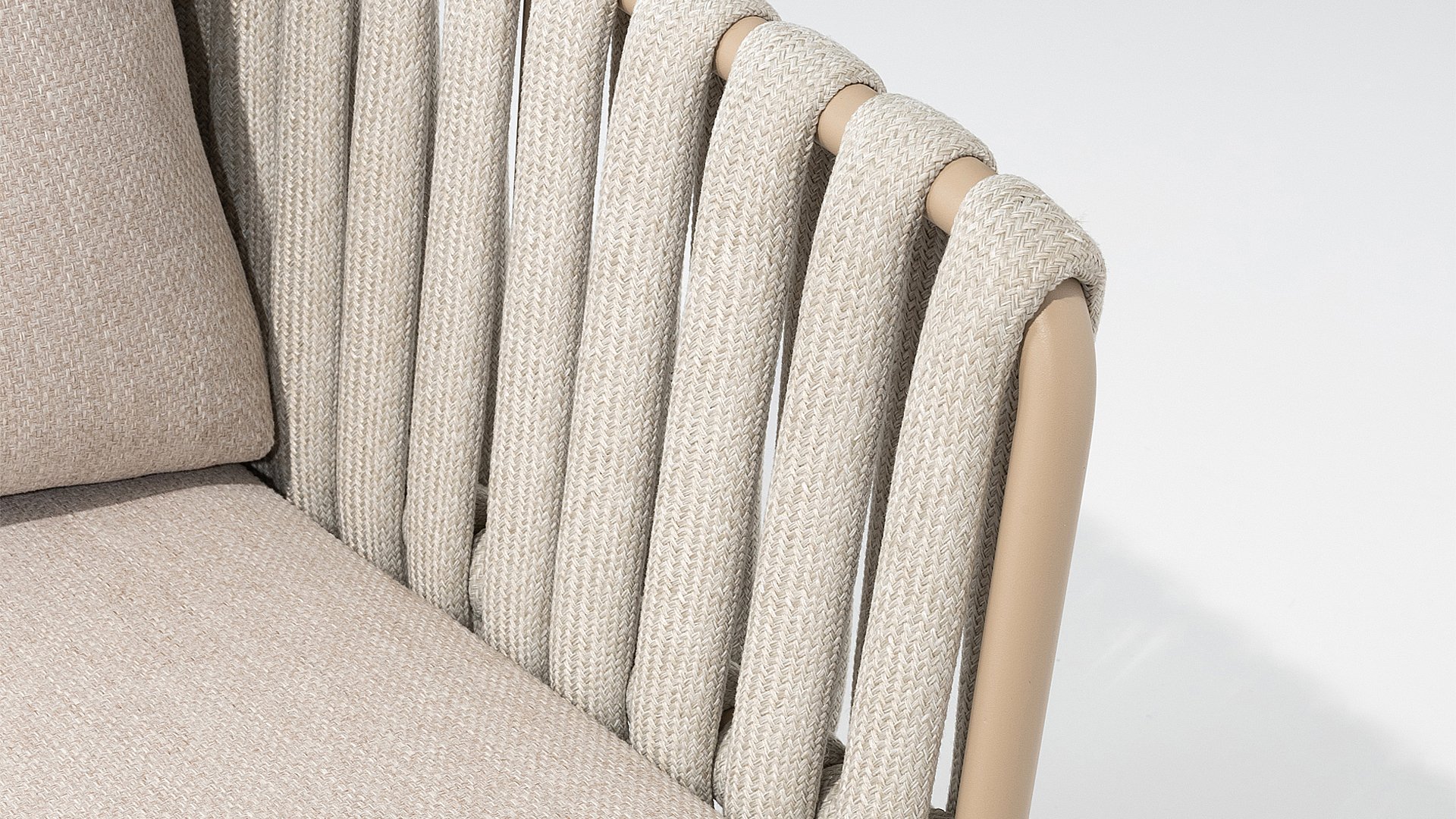 - Natural appearance: The latte rope upholstery gives the lounge set a natural, warm and friendly appearance, perfect for a relaxed outdoor environment.