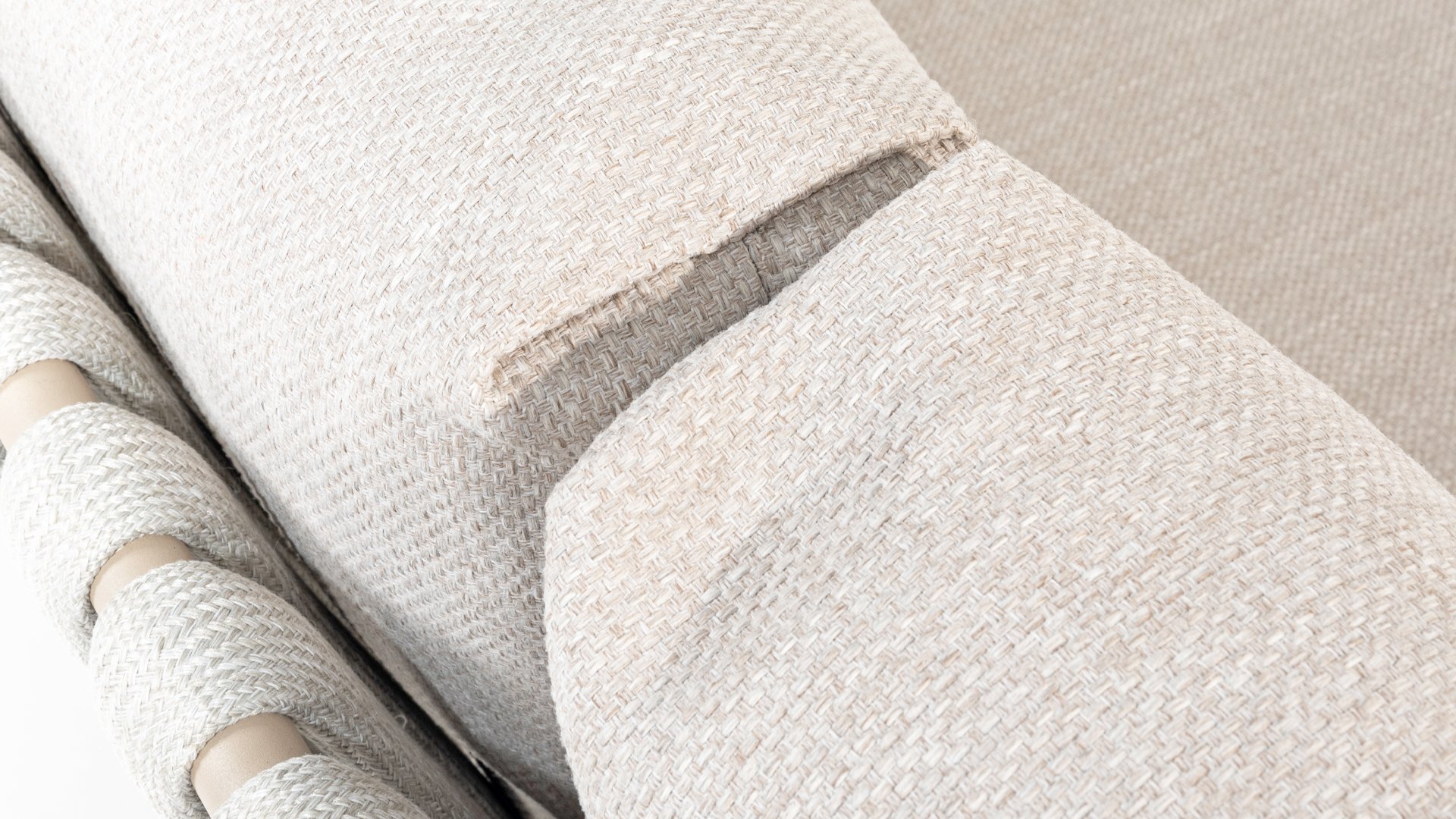 This beautiful material is perfect for outdoor use, because Taste Rope isn't just any shoelace. Taste uses very high-quality rope made from 100% SDP (Solution Dyed Polypropylene). This material is extremely strong and has very little stretch. Polypropylene is oil-based, so dirt and contaminants are virtually insoluble, just like our cushions. Taste offers exclusive designs using hand-woven rope patterns and techniques.
