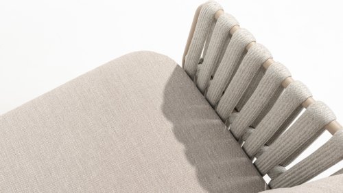 Passion for Eva Designed with an eye for detail. The thick, soft rope straps follow the beautiful organic shape of the frame. Add to that the wonderfully comfortable cushions and you will understand why we are enthusiastic about the Taste by 4 Seasons Outdoor Eva lounge and dining set. The Taste 4SO Eva dining chair has a modern look. The chair is delivered including soft cushions and has a contemporary, aluminum frame with matching, latte rope upholstery. The thick rope combines beautifully with the latte frame and, together with the cushions, ensures a comfortable seating comfort. A color that can best be described as tasteful beige.