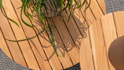 The Verdi coffee tables from 4 Seasons Outdoor is a beautiful series with a natural appearance. Due to its anthracite stainless steel frame, combined with teak wood, the Verdi is a coffee table that easily complements our lounge sets from 4 Seasons Outdoor. The nice thing about the Verdi coffee tables is that they are very suitable for mix & match, as they are available in different sizes. Are you looking for a rectangular coffee table, or do you prefer round? With the Verdi coffee tables, it can all be done. This coffee table is available in the color teak and teak latte.