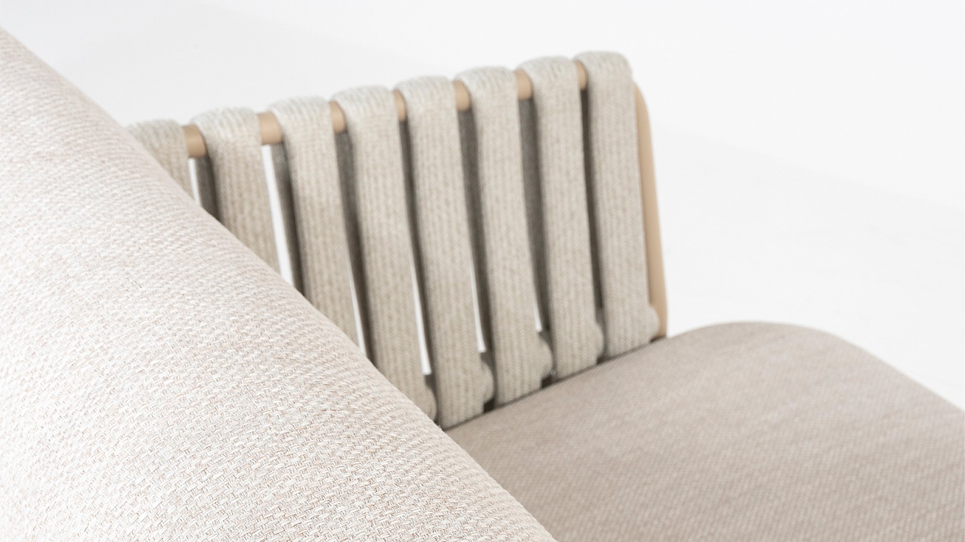 This beautiful material is perfect for outdoor use, because Taste Rope isn't just any shoelace. Taste uses very high-quality rope made from 100% SDP (Solution Dyed Polypropylene). This material is extremely strong and has very little stretch. Polypropylene is oil-based, so dirt and contaminants are virtually insoluble, just like our cushions. Taste offers exclusive designs using hand-woven rope patterns and techniques.