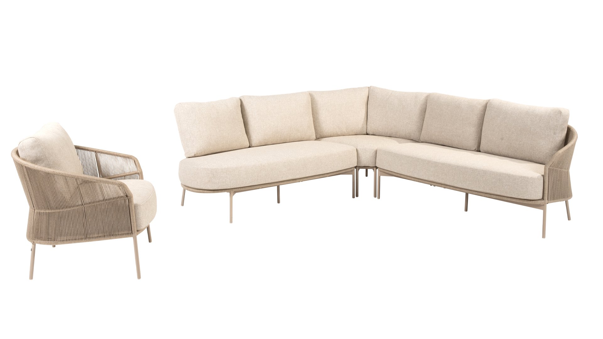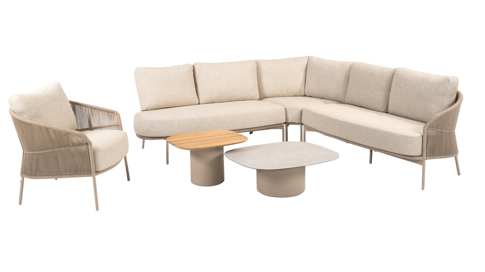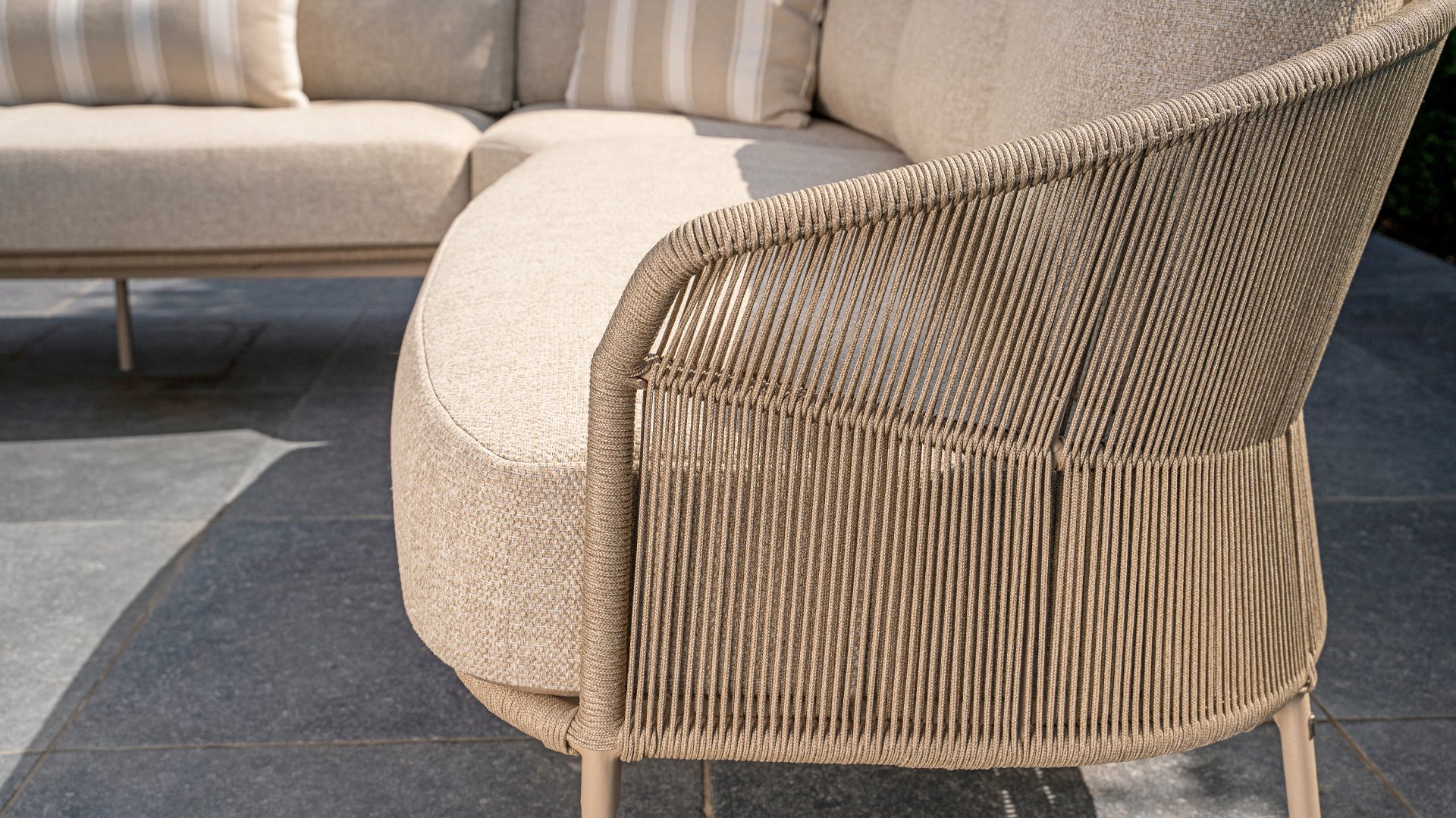 Let your style shine with the Florence. The beautiful rope design is combined with luxurious cushions for the perfect combination of style and comfort. Enjoy ultimate relaxation and unwind completely this summer. Available in two elegant colors: Taste Florence Terre Lounge – a warm, earthy shade that blends perfectly with natural garden elements. Taste Florence Latte Lounge – a light, elegant color that creates a fresh, summery look.