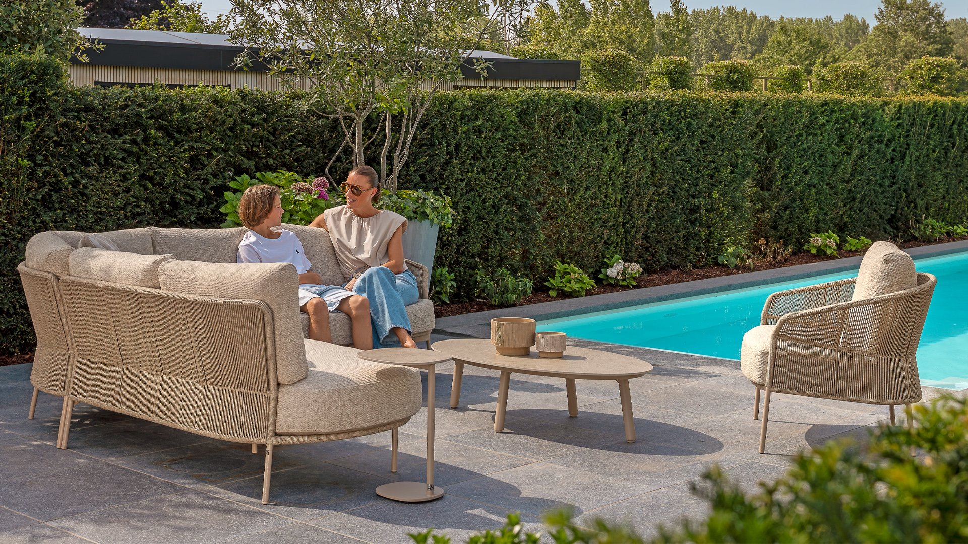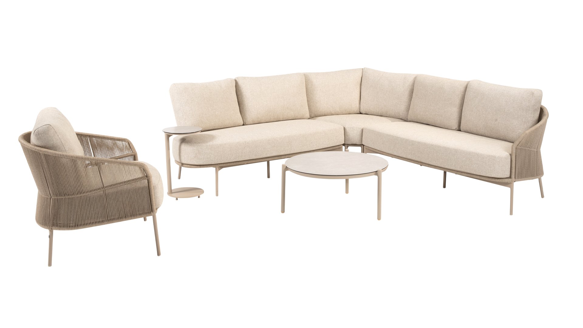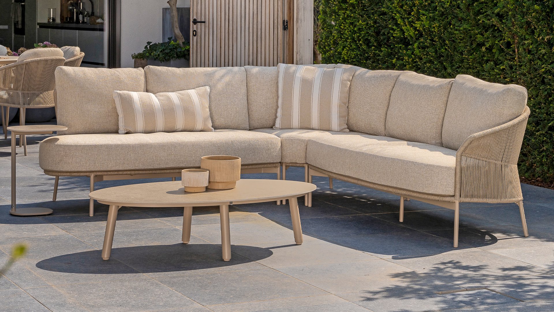 Let your style shine with the Florence. The beautiful rope design is combined with luxurious cushions for the perfect combination of style and comfort. Enjoy ultimate relaxation and unwind completely this summer. Available in two elegant colors: Taste Florence Terre Lounge – a warm, earthy shade that blends perfectly with natural garden elements. Taste Florence Latte Lounge – a light, elegant color that creates a fresh, summery look.