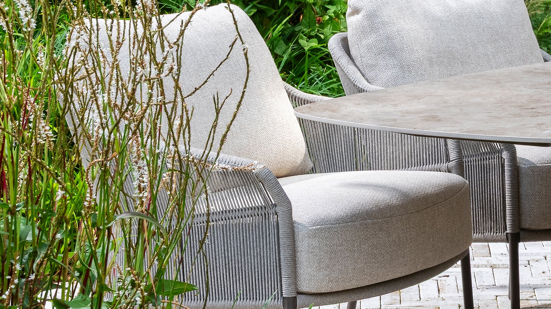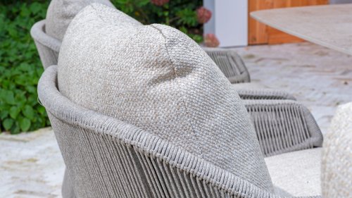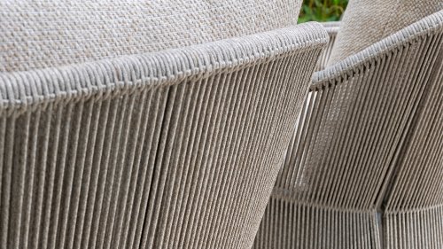 The Florence low dining chair combines the best of both worlds: the relaxed ambiance of a lounge chair with the functionality of a dining table. The modern design features a vertical rope pattern that creates a beautiful interplay of lines with the frame. The Florence pairs beautifully with one of our low dining tables for stylish and comfortable outdoor living.
