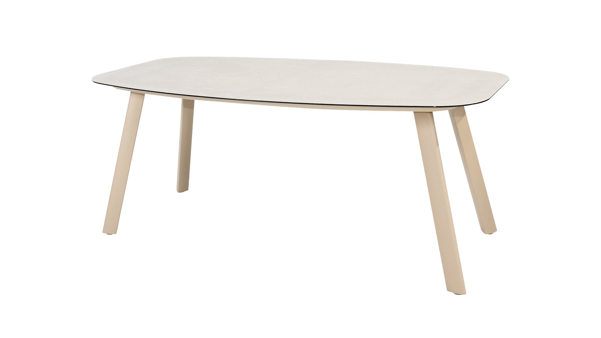 Looking for a low-maintenance table with a modern look? Then consider the Taste by 4 Seasons Outdoor Manolo 180cm, available in anthracite, latte, and terre. The shape of the tabletop and the position of the aluminum legs make this table incredibly practical. This shape creates ample space on all sides. The table's distinctive design features a Danish oval tabletop made of glass-printed ceramic, allowing it to remain outdoors year-round. The Manolo is also available in 75x75x75cm and 240x103x75cm in three colors.