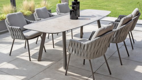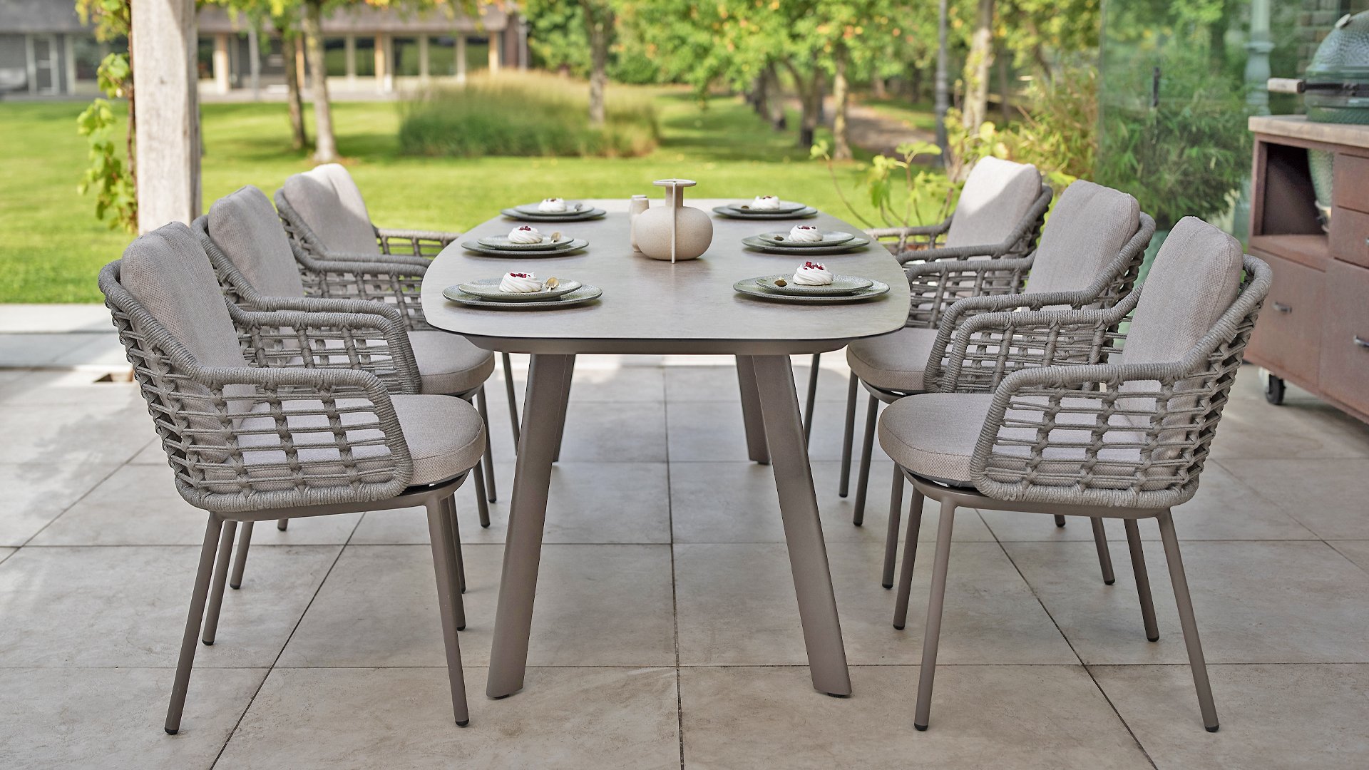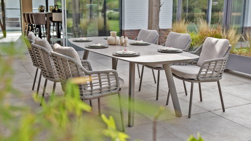 Looking for a low-maintenance table with a modern look? Then consider the Taste by 4 Seasons Outdoor Manolo 240cm, available in anthracite, latte, and terre. The shape of the tabletop and the position of the aluminum legs make this table incredibly practical. This shape creates ample space on all sides. The table's distinctive design features a Danish oval tabletop made of glass-printed ceramic, allowing it to remain outdoors year-round. No room for a 240cm table? The Taste 4 Seasons Manolo 75cm or 180cm are alternatives; both sizes are available in latte, anthracite, and terre.