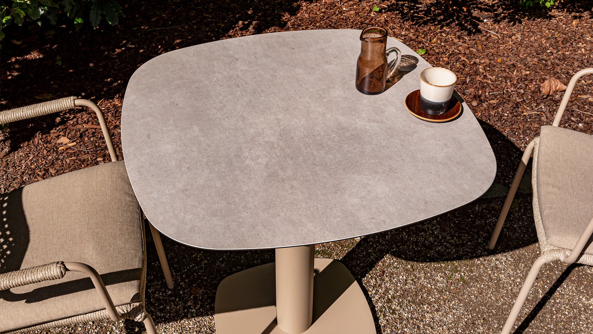 The Taste by 4 Seasons Outdoor Manolo 75cm is available in three trendy colors: Latte, a warm, neutral shade that easily complements a variety of chairs. Anthracite, a darker shade that adds a sleek, modern look. And Terre, a warm, dark earth tone. This versatile table is ideal for both indoors and outdoors, offering the perfect spot for a cup of coffee or a cozy dinner. Also available in larger sizes: 180x95x75cm and 240x103x75cm, in three colors.