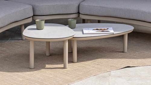 Bring a touch of elegance and refinement to your living space with the Monroe coffee table series from Taste by 4 Seasons Outdoor. This beautiful set consists of two organically shaped tables with pebble-shaped tops – playful, yet perfectly balanced. Thanks to its distinctive design, the Monroe becomes a stylish focal point of any outdoor or indoor space.