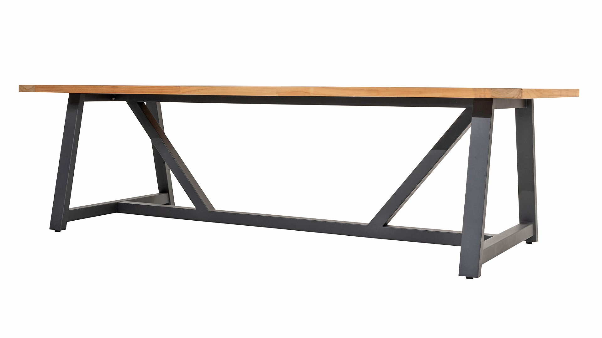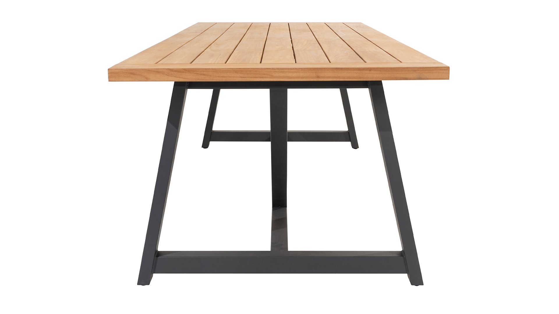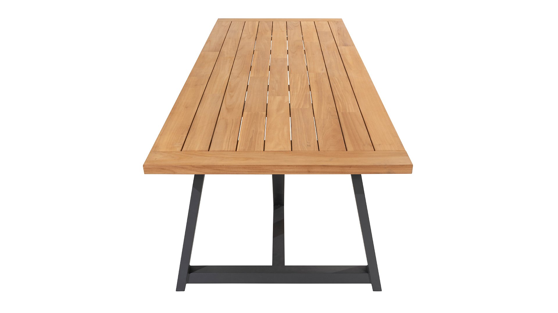 The Noah teak table from Taste 4SO is a robust table that exudes elegance. The base gives the table a sturdy and modern appearance. The size of 260 provides ample seating space at this table. The Noah table is also available with a brushed teak finish, and with a regular teak finish. Come visit our showroom now to explore the options of this beautiful table.