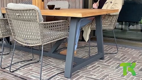 Teak is a natural product and particularly suitable for outdoor use. It is resistant to pests and mold and can withstand sun, rain, and snow. Over time, teak develops a silver-gray patina. Teak is a robust material and requires little maintenance. If you prefer the original color of your teak, you can easily prevent it from turning gray by regularly using our care product. You can also clean teak with green soap. We offer a warranty on all manufacturing and construction defects. This does not include the working of teak. When you choose teak, we expect you to appreciate these qualities. Hairline cracks that may develop, knots in the teak, and rough surfaces or irregular discoloration over time are not covered by our warranty. These characteristics give teak its unique character and appearance; they are part of its natural properties. Be careful with a flowerpot or vase on your teak garden table, as this can cause persistent rings or color variations. Imperfections are common; these imperfections are characteristic of this product. These irregularities can never give ground to a claim, warranty, or complaint. This is a signs ans signature of originality!