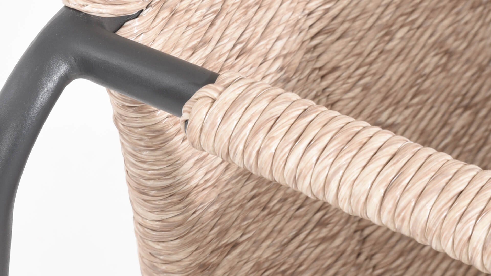 The stackable Palma dining garden chair from Taste by 4Seasons Outdoor is a beautiful eye-catcher on your terrace. A nice comfortable chair that fits well in many garden styles. The trendy Palma garden chair from the garden furniture brand Taste 4SO is a stackable wicker garden chair. The open design is made possible by choosing a powder-coated stainless steel frame. Surrounding it is twisted maintenance-free wicker, which has a natural look. The Palma comes in 3 variants: anthracite, light grey and natural. The stainless steel frame is finished with a high-quality anthracite powder coating.