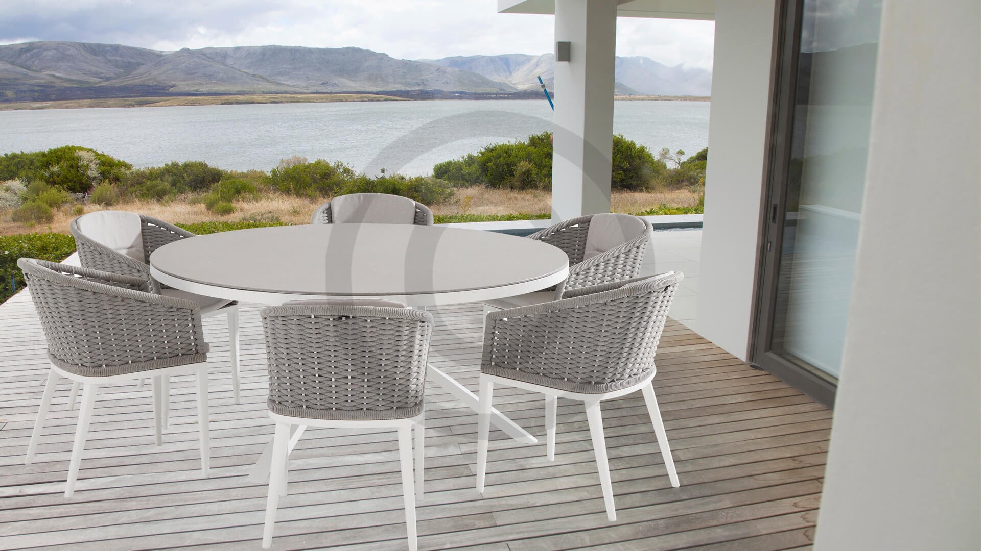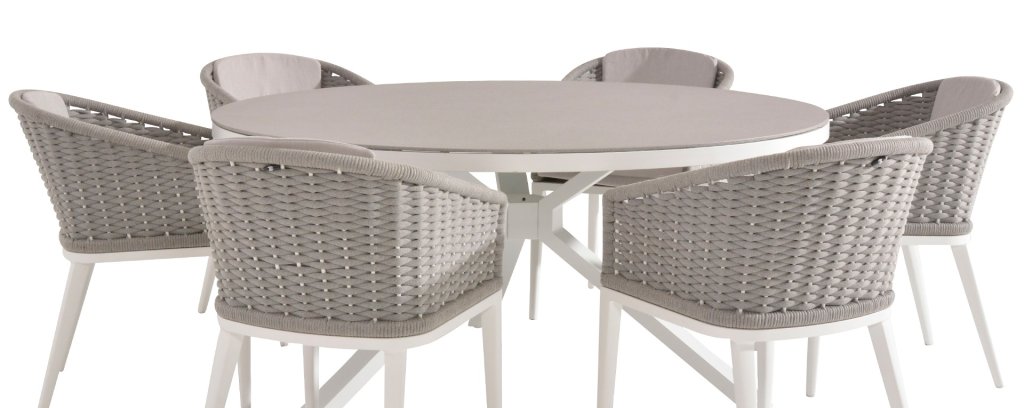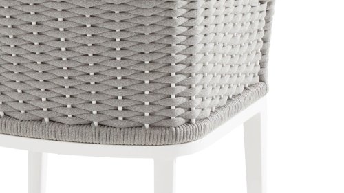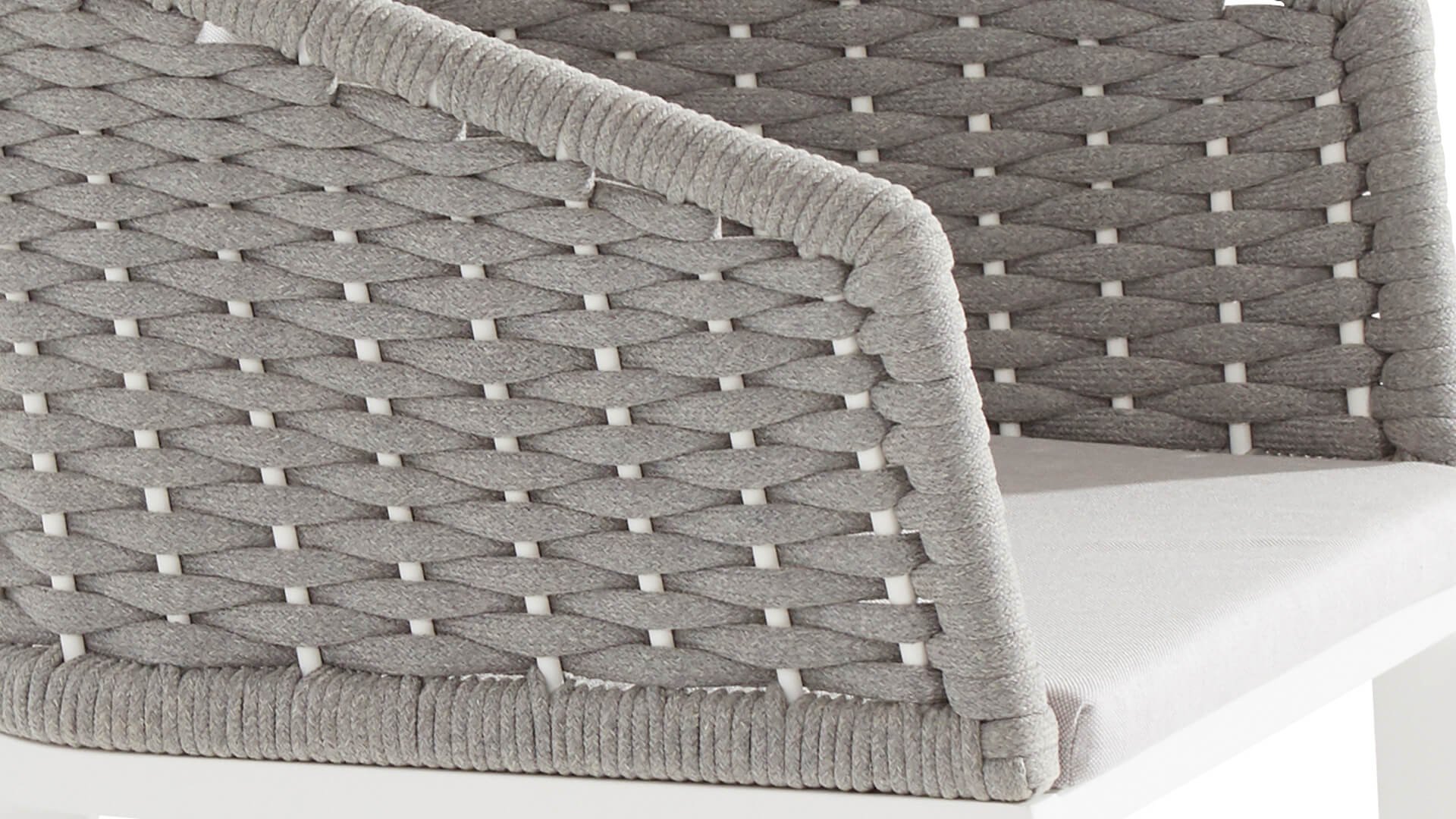 The Taste Portobello Dining is available in white aluminum as well as in Matt Carbon aluminum. The White is combined with a Grey-colored rope and the Matt Carbon with an Anthracite-colored rope. The Taste by 4 Seasons Portobello frame is woven with synthetic wicker, in the form of rope (Rope), creating a comfortable and "soft" touch.
