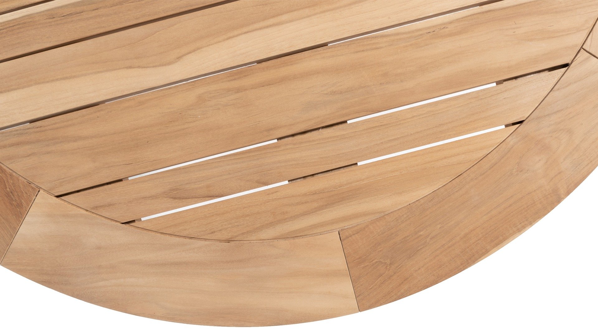 Teak is a natural product and particularly suitable for outdoor use. It is resistant to pests and mold and can withstand sun, rain, and snow. Over time, teak develops a silver-gray patina. Teak is a robust material and requires little maintenance. If you prefer the original color of your teak, you can easily prevent it from turning gray by regularly using our care product. You can also clean teak with green soap. We offer a warranty on all manufacturing and construction defects. This does not include the working of teak. When you choose teak, we expect you to appreciate these qualities. Hairline cracks that may develop, knots in the teak, and rough surfaces or irregular discoloration over time are not covered by our warranty. These characteristics give teak its unique character and appearance; they are part of its natural properties. Be careful with a flowerpot or vase on your teak garden table, as this can cause persistent rings or color variations. Imperfections are common; these imperfections are characteristic of this product. These irregularities can never give ground to a claim, warranty, or complaint. This is a signs ans signature of originality!