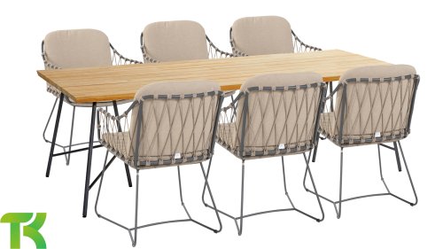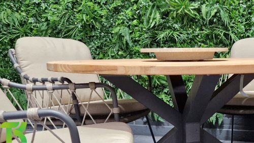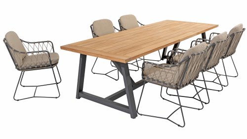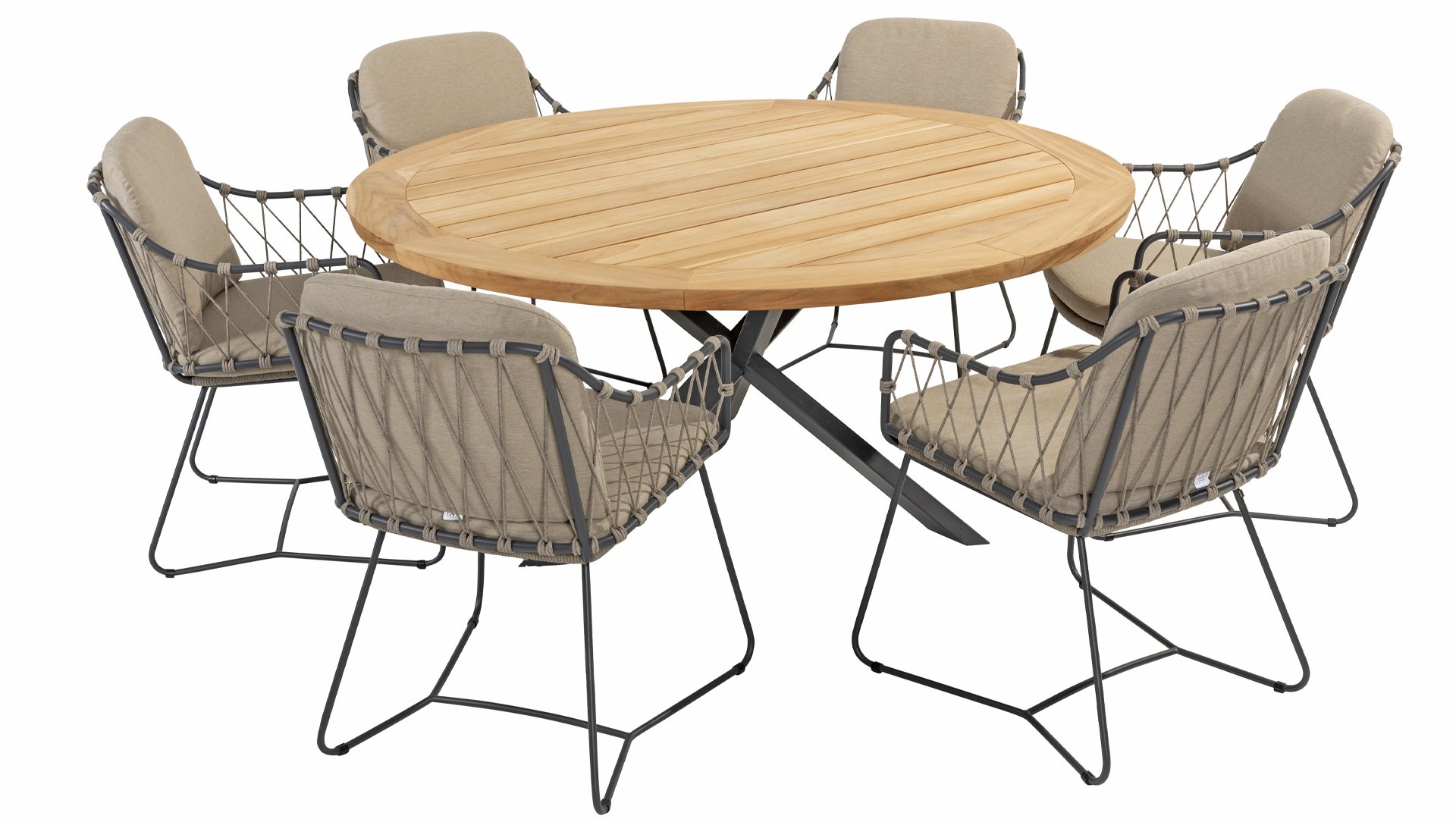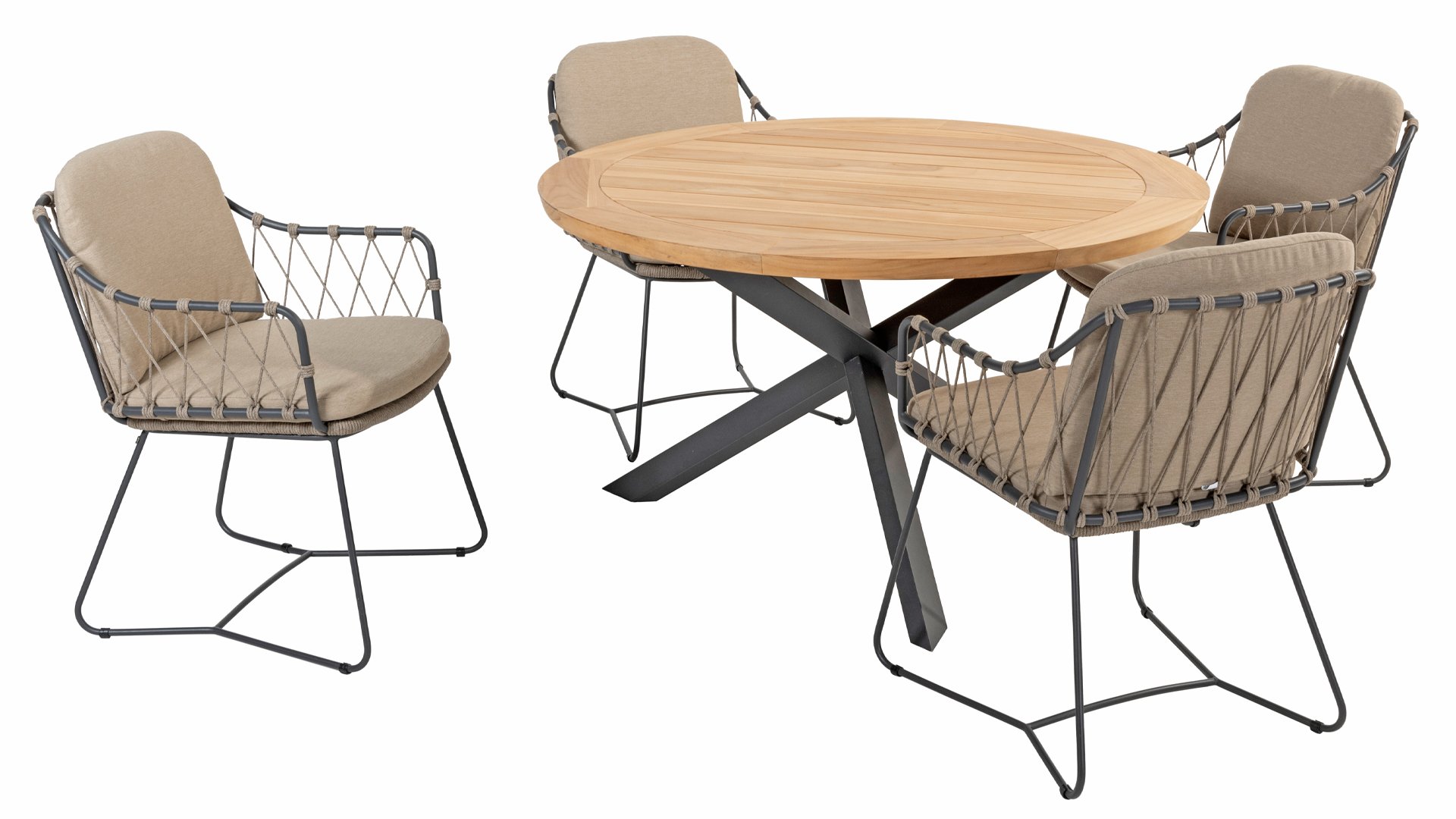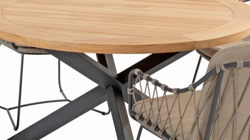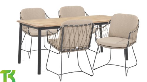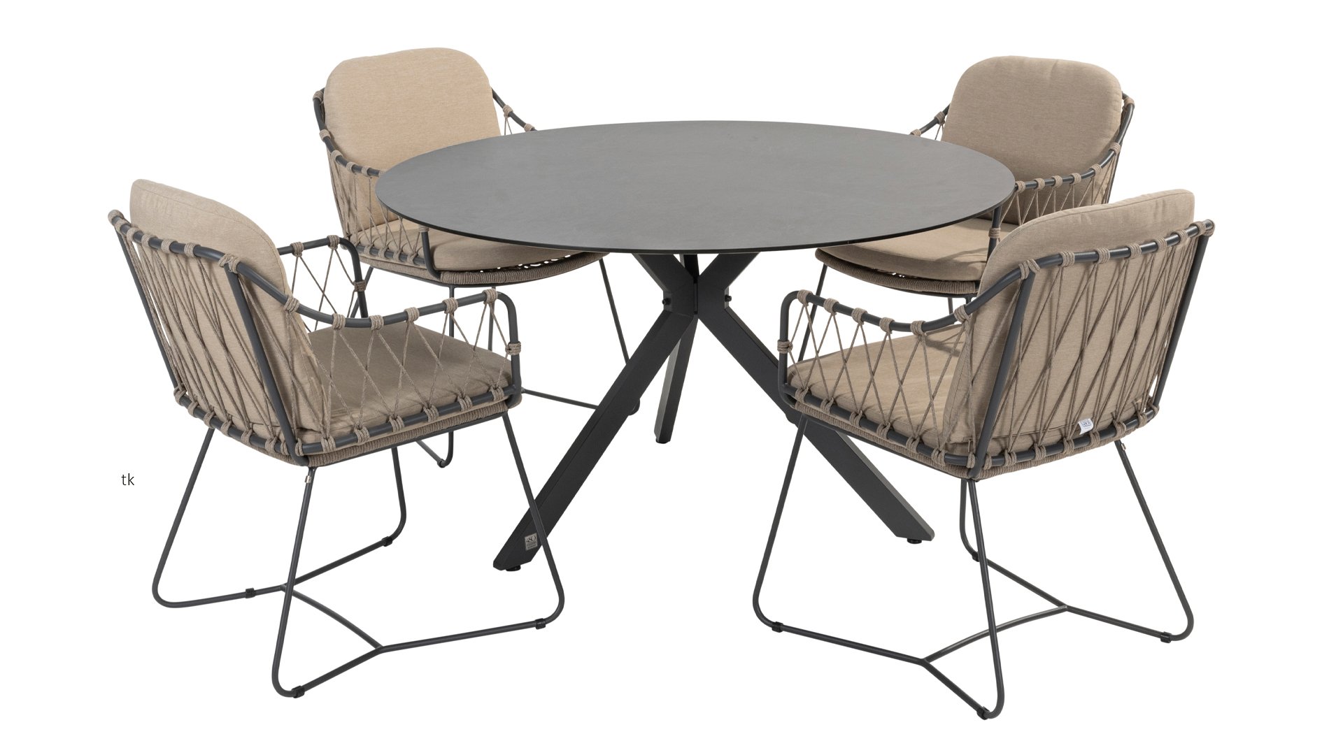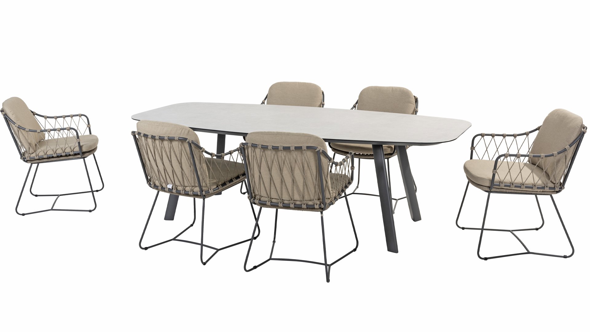 The Prego dining chair is made with high-quality taupe rope and has a sturdy frame made of anthracite stainless steel and aluminum, making it resistant to changing weather conditions. The included cushions provide extra comfort during long, relaxed dinners or cozy gatherings outdoors.