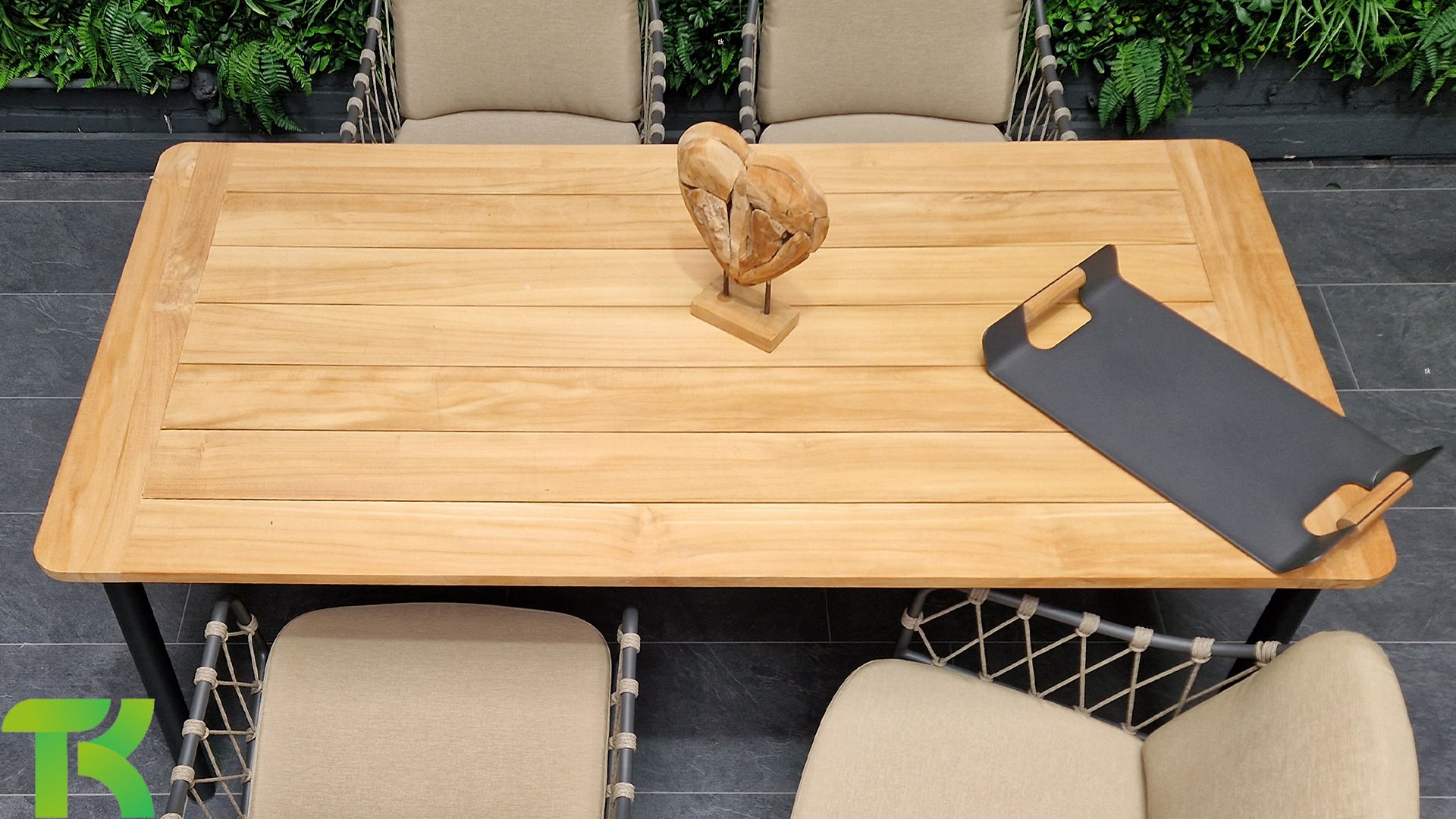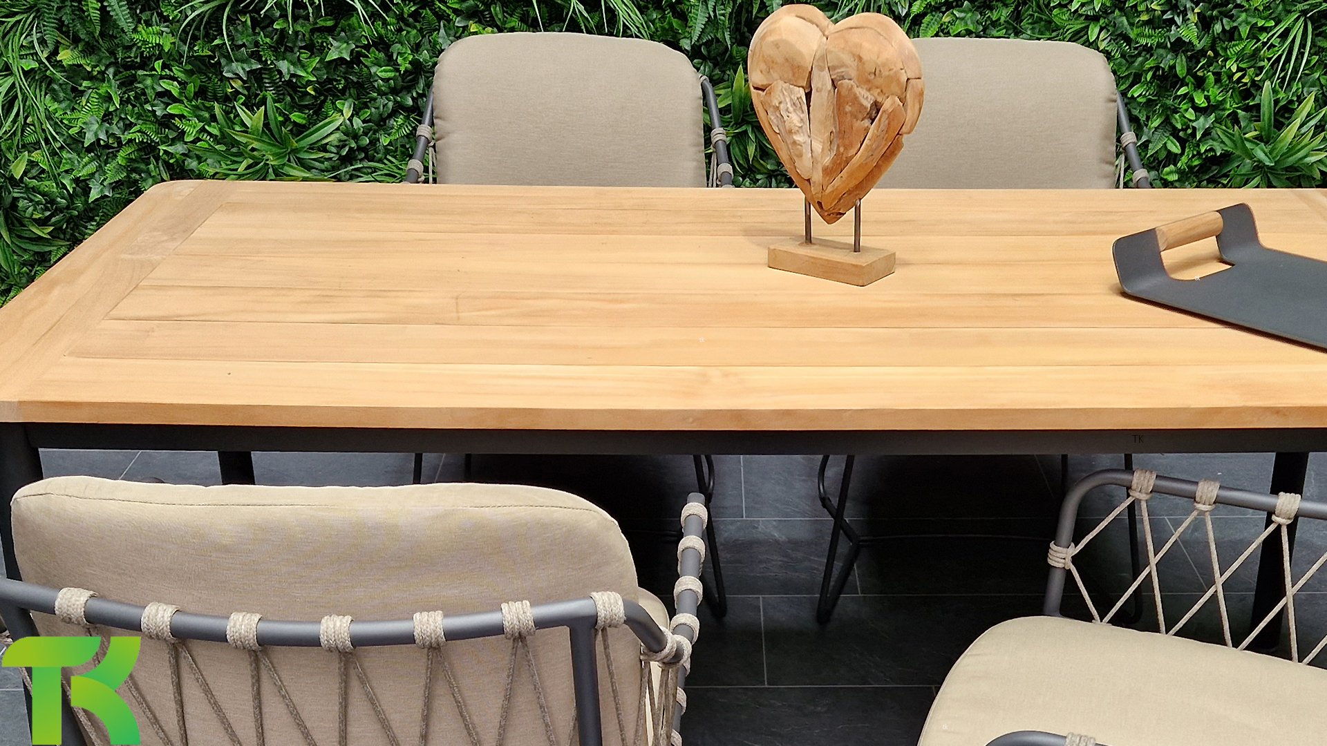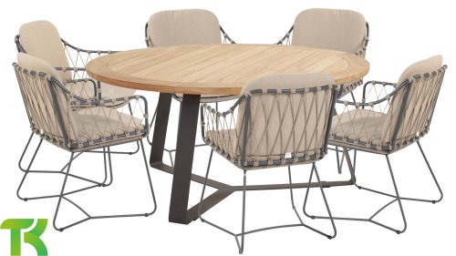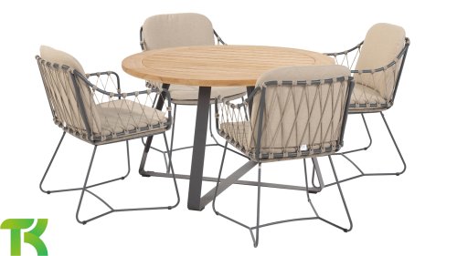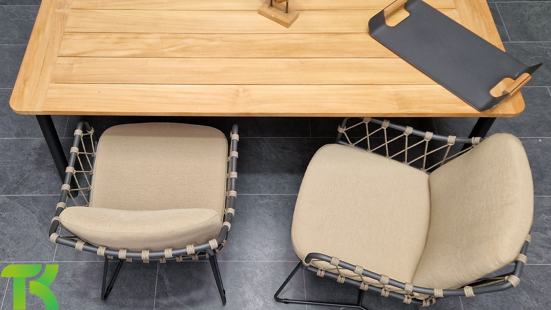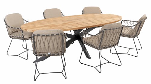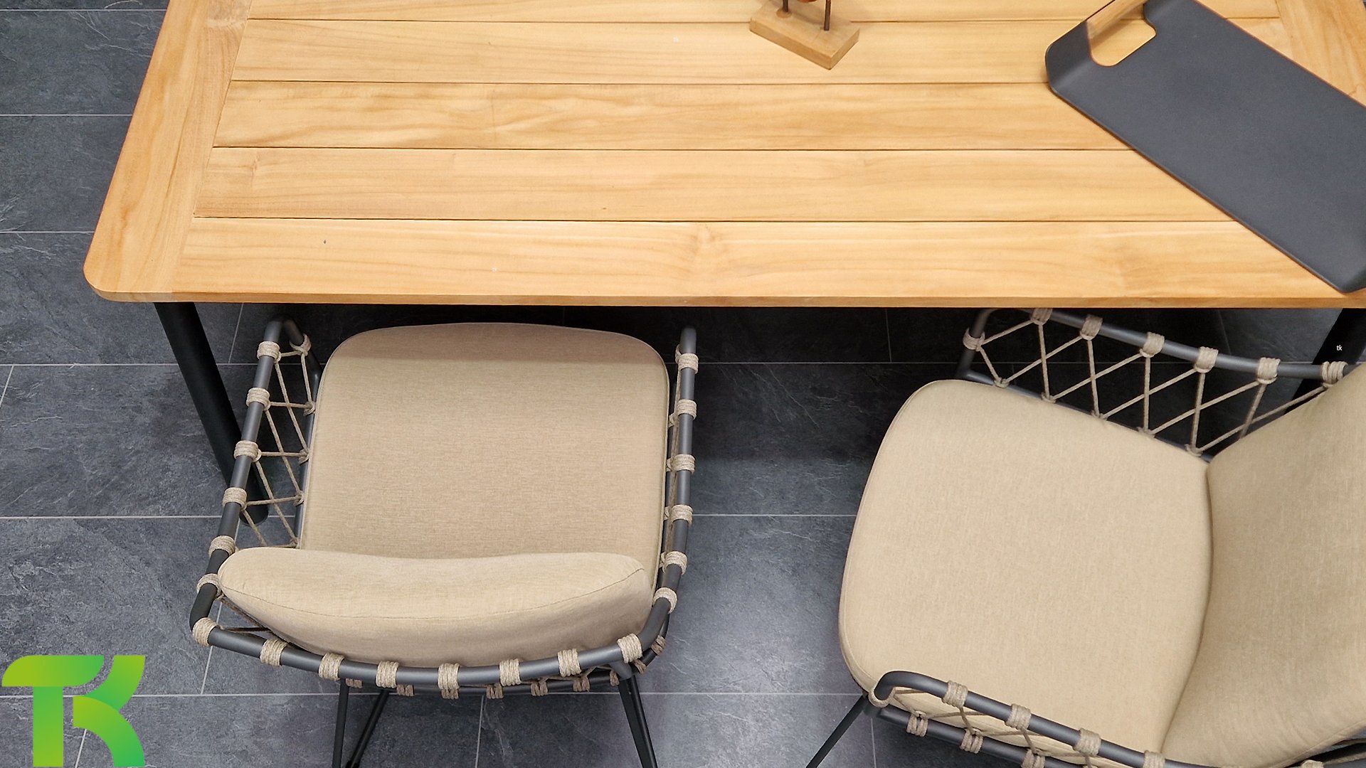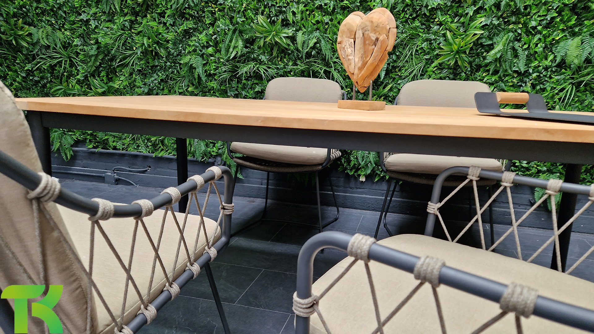 The Prego dining chair is made with high-quality taupe rope and has a sturdy frame made of anthracite stainless steel and aluminum, making it resistant to changing weather conditions. The included cushions provide extra comfort during long, relaxed dinners or cozy gatherings outdoors.