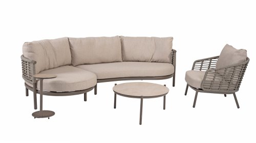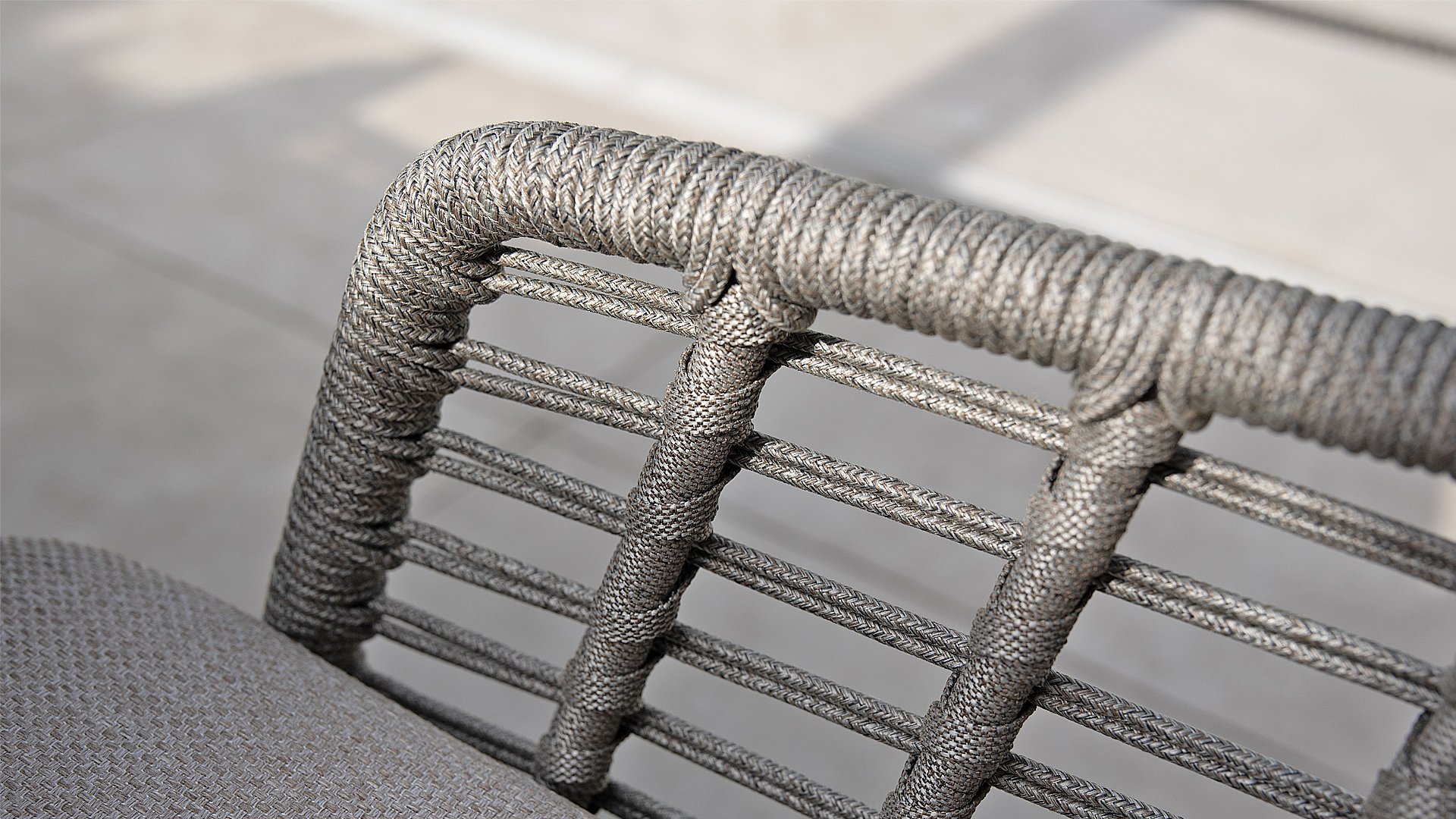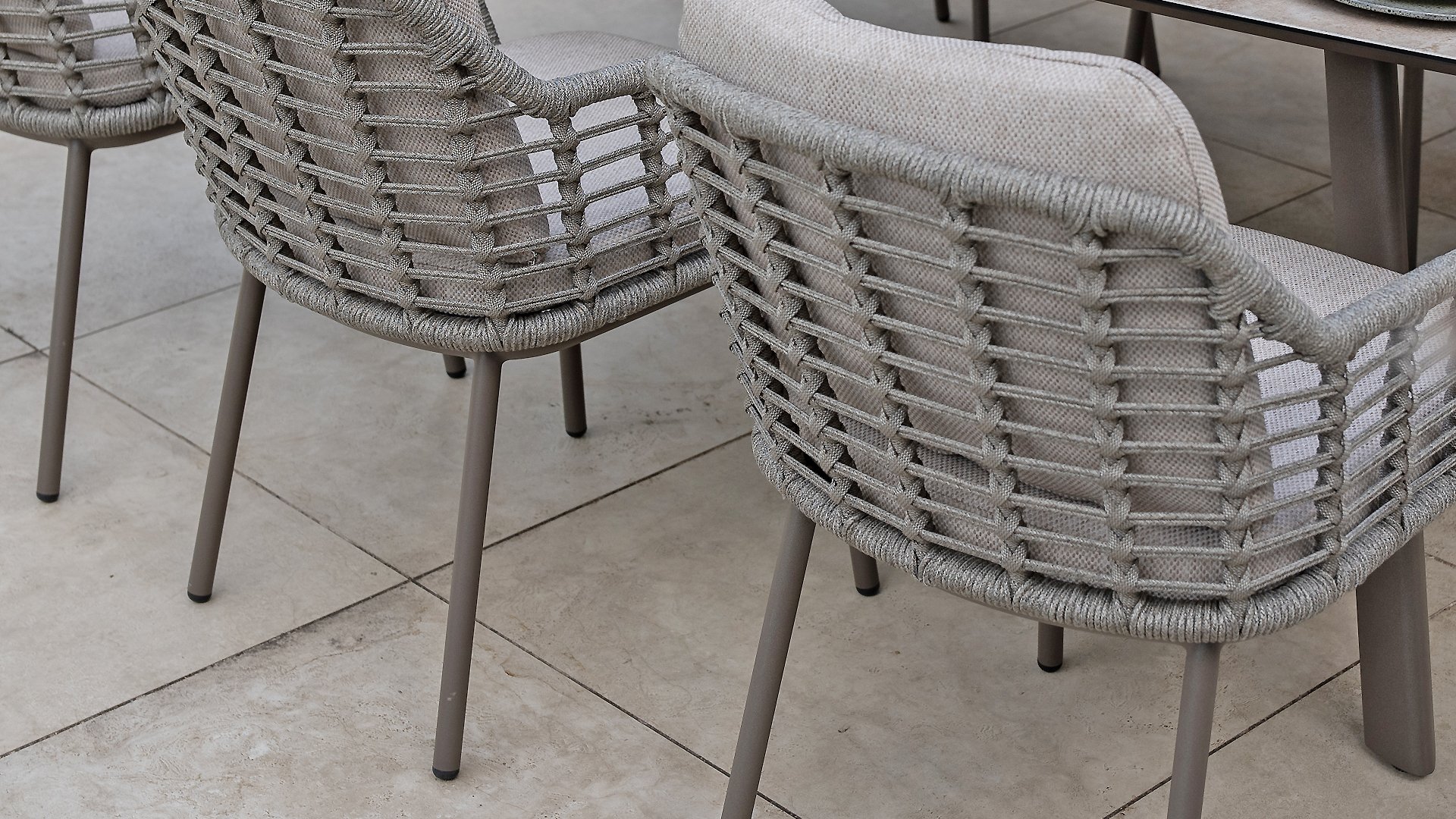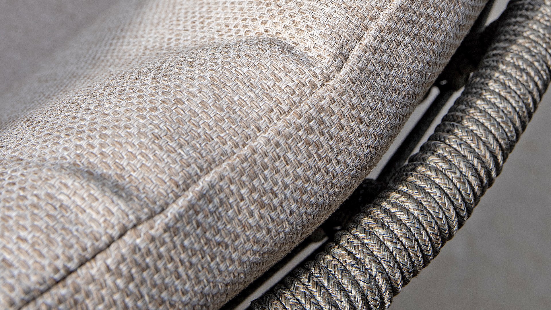 The strength of the Puglia series lies in its smart mix of materials. The frame is made of powder-coated aluminium—lightweight and rust-resistant. The back and armrests are expertly woven with high-quality rope, giving the chairs and sofas an open, airy look that fits perfectly in a modern garden. To complete the comfort, the furniture comes with cushions made from Olefin fabric. This material is not only wonderfully soft but also dirt-repellent and weather-resistant, so an unexpected summer shower is no issue at all.