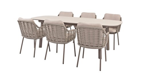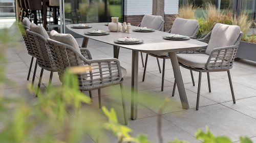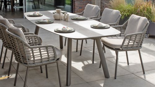 Taste by 4 Seasons Outdoor Puglia Dining – Bring the warm, authentic atmosphere of Southern Italy to your own terrace. This collection is a top choice for anyone seeking a combination of high-end design, organic shapes and exceptional seating comfort. The name of this series is no coincidence: the design of these pieces reflects true Southern European charm. The organic lines and the use of earthy and light tones instantly add a relaxed, summery vibe to your outdoor space.