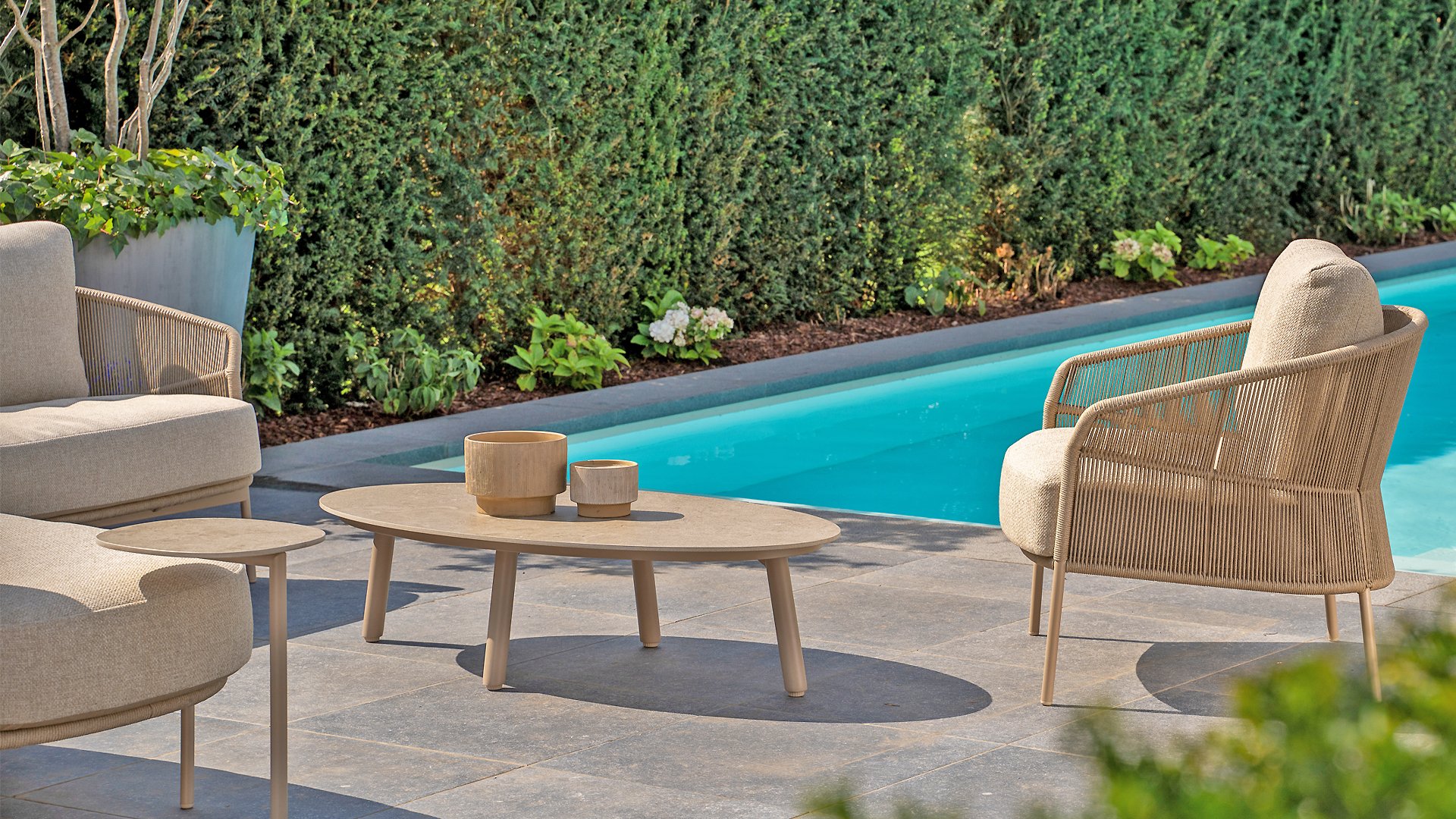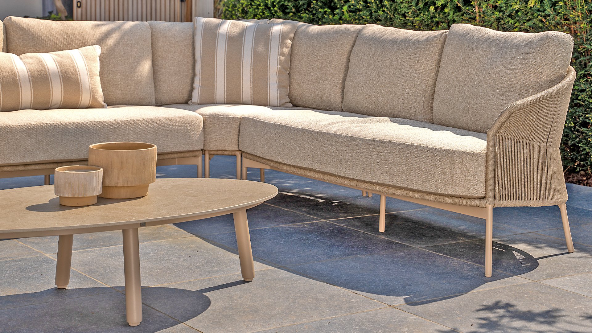 Aluminum is very easy to maintain and lightweight, just like our wickerwork. This practical furniture is easy to clean. Our aluminum, with its sturdy powder coating, is weatherproof and UV-resistant. Aluminum is rust-resistant, timeless, and stylish.