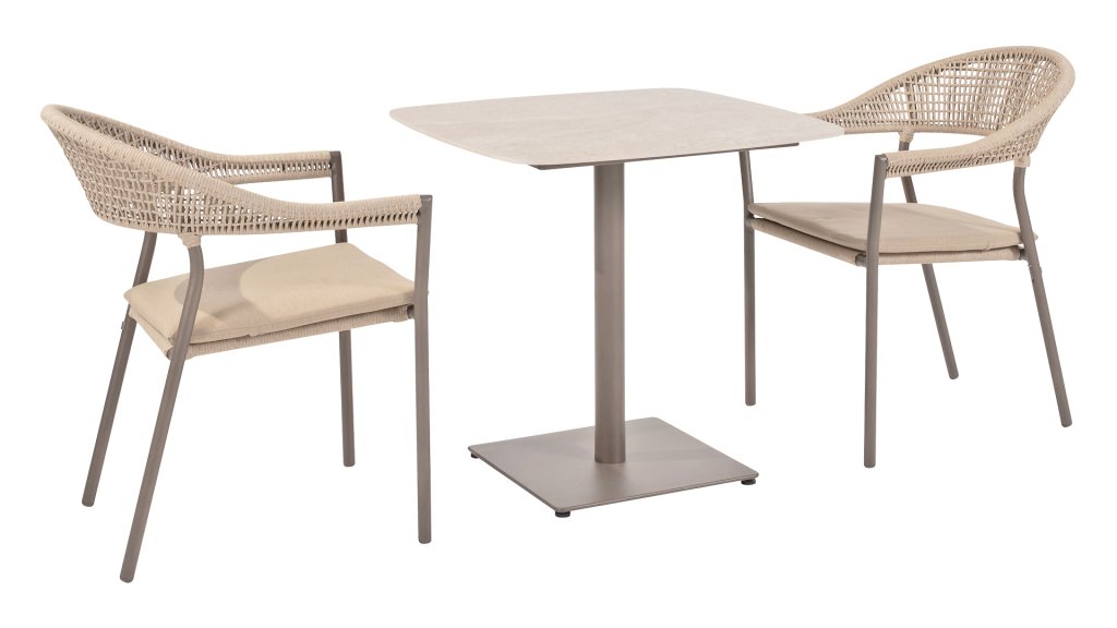 The Taste Sienna patio set has its own unique style, complete with modern rope! The beauty lies in the details. The back of the Sienna dining set by Taste by 4Seasons is woven from rope, providing a sturdy yet comfortable seat. The frame creates a playful and minimalist interplay of flowing lines, forming a solid framework. A feast for the eyes! The Sienna is available in Latte, Terre and Anthracite.