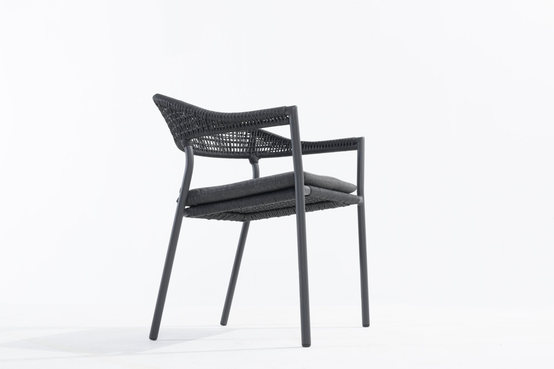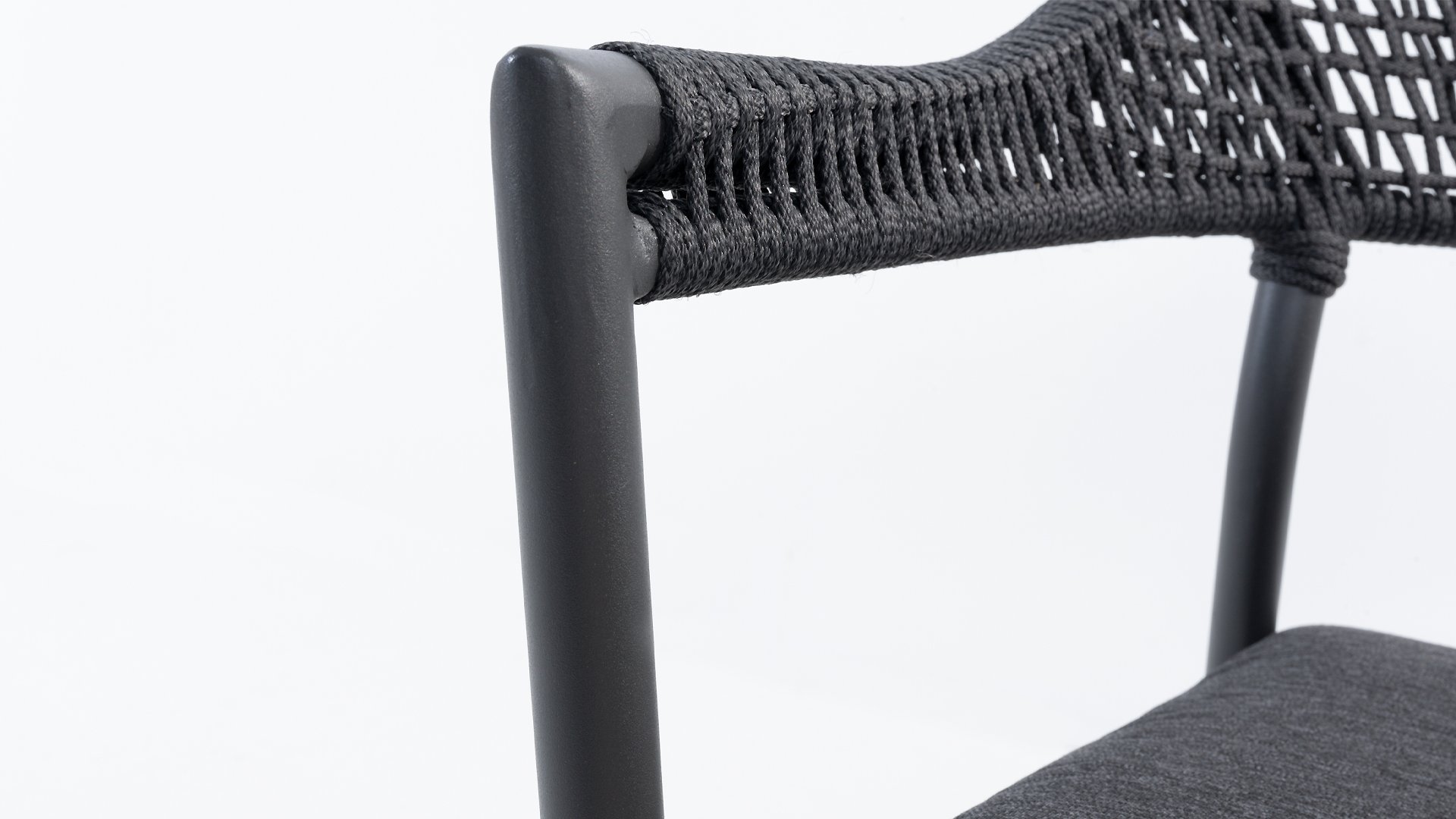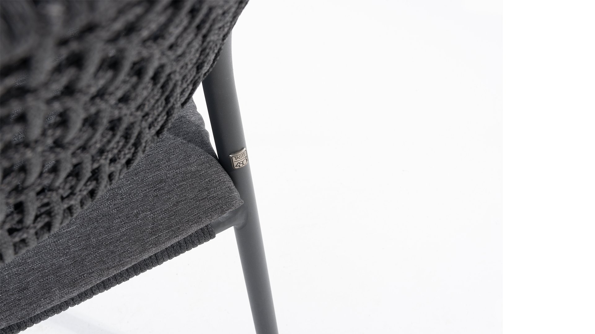 The Taste Sienna patio set has its own unique style, complete with modern rope! The beauty lies in the details. The back of the Sienna dining set by Taste by 4Seasons is woven from rope, providing a sturdy yet comfortable seat. The frame creates a playful and minimalist interplay of flowing lines, forming a solid framework. A feast for the eyes! The Sienna is available in Latte, Terre and Anthracite.