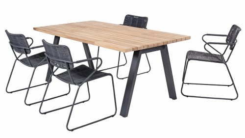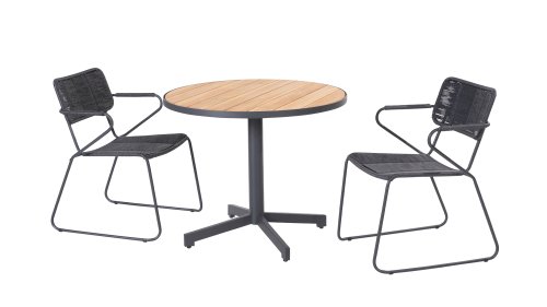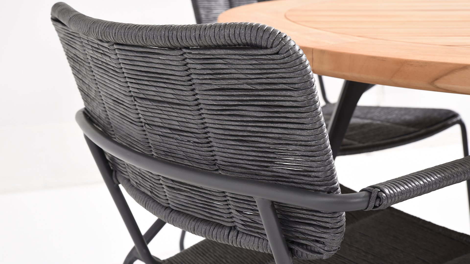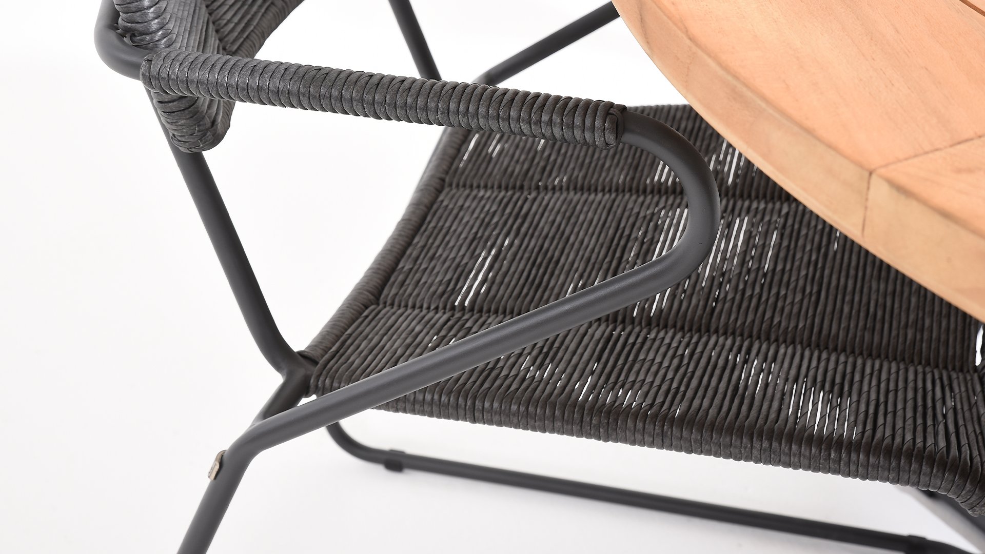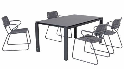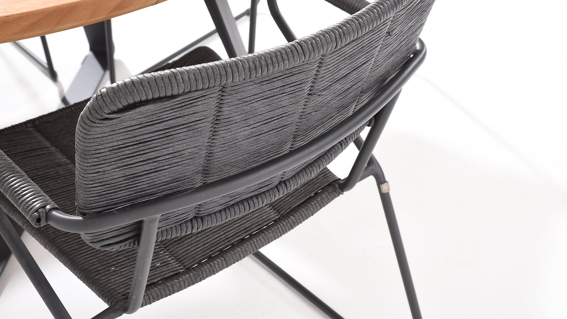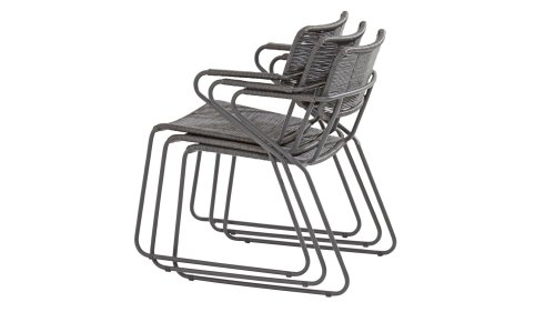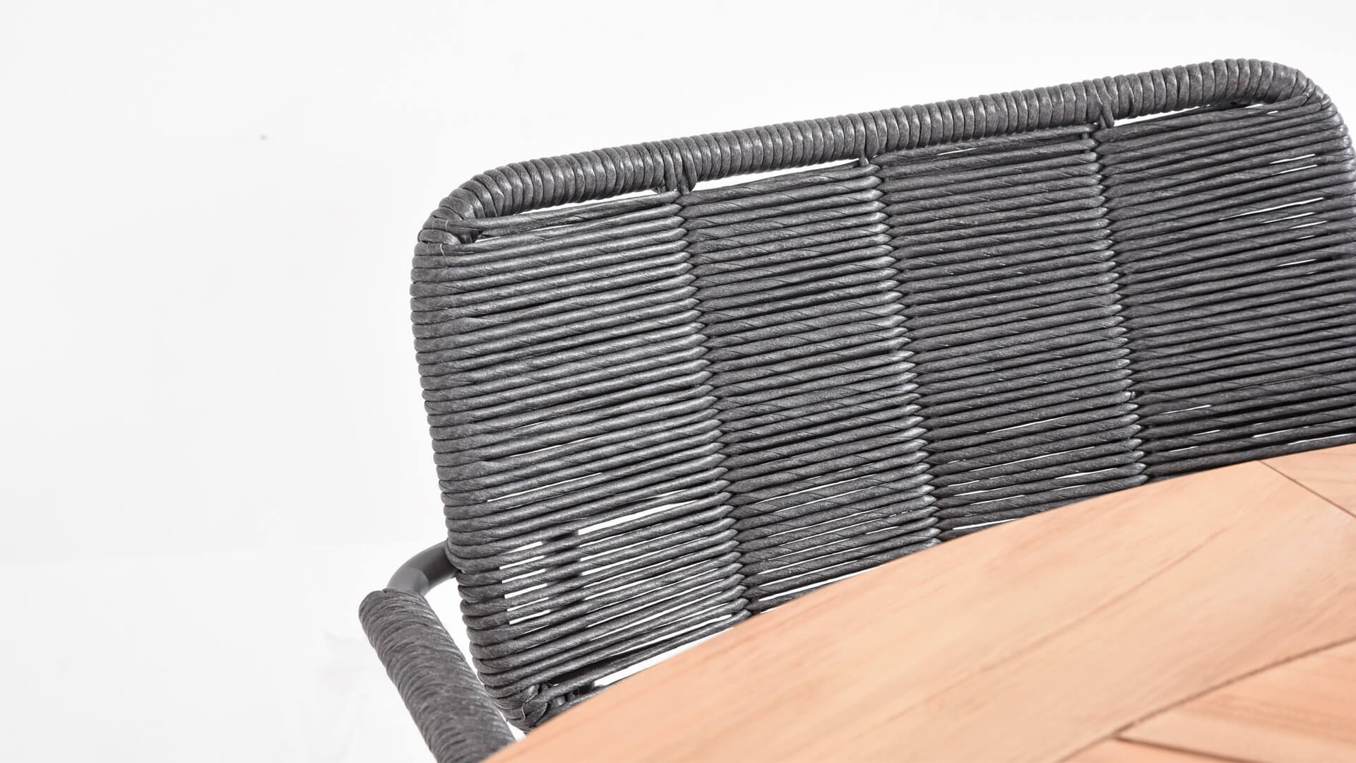 The anthracite stainless steel frame has a strong yet minimal and industrial look due to the thin round tubes. The rounded corners still give it a friendly character. The material of the Swing chair is unique in our collection. It is a twisted wicker wire. It gives the Swing chair a natural rope-like appearance. Both the seat and the backrest are made of this material, and the armrests are also wrapped with the same wicker. This, in addition to a beautiful appearance, provides a springy comfortable seat. The design takes into account a beautifully shaped seat and back section, so the Swing chair is very comfortable to sit in! The chair is available in both anthracite and rope color (natural). Wicker is known for being extremely weather-resistant and easy to maintain. The 4 Seasons Swing dining garden chair can be perfectly combined with the 4 Seasons Taste Derby and Basso table series. Mix & Match is perfect with our design series Swing!