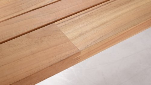 Teak is a natural product and particularly suitable for outdoor use. It is resistant to pests and mold and can withstand sun, rain, and snow. Over time, teak develops a silver-gray patina. Teak is a robust material and requires little maintenance. If you prefer the original color of your teak, you can easily prevent it from turning gray by regularly using our care product. You can also clean teak with green soap. We offer a warranty on all manufacturing and construction defects. This does not cover the working of teak. If you choose teak, we expect you to appreciate these qualities. Hairline cracks that may develop, knots in the teak, and rough surfaces or irregular discoloration over time are not covered by our warranty. These characteristics, which give teak its unique character and appearance, are part of its natural properties. Be careful with a flowerpot or vase on your teak garden table, as this can cause persistent rings or color variations. Imperfections are common; these imperfections are characteristic of this product. These irregularities can never give rise to a claim, warranty, or complaint. This is a mark of originality!