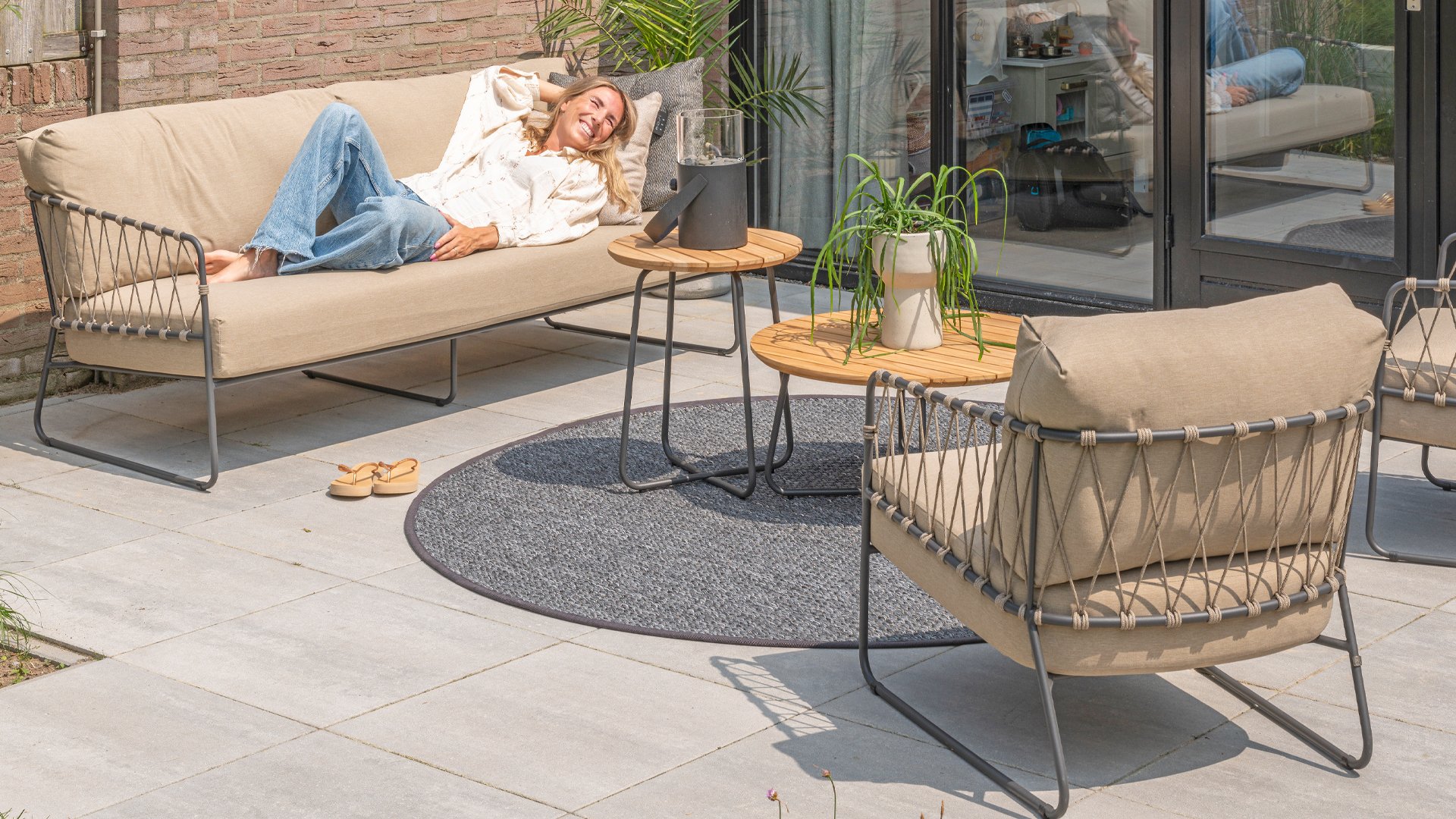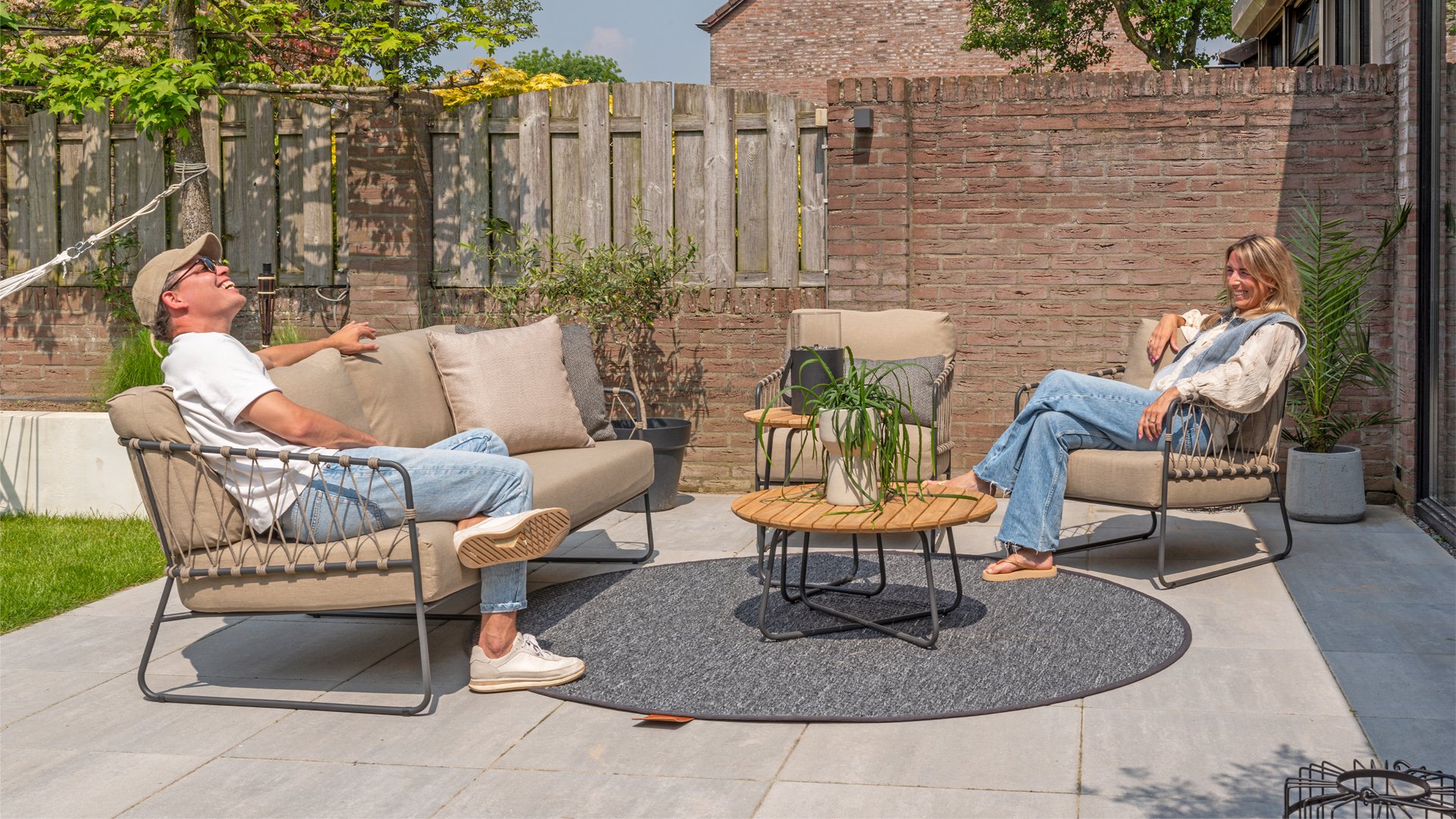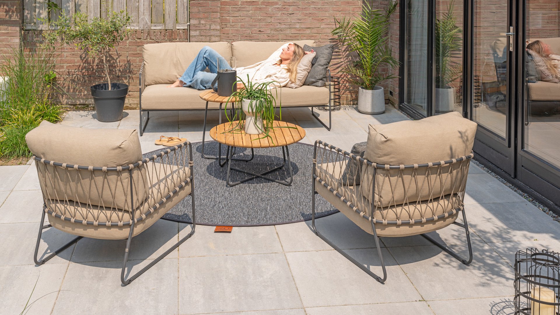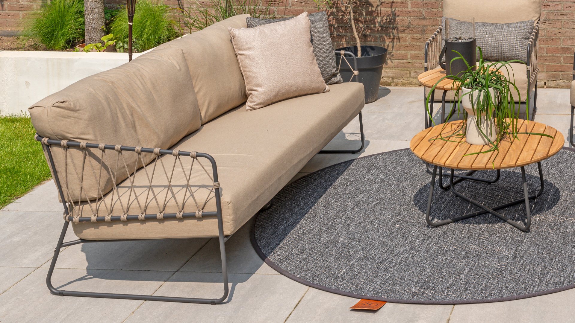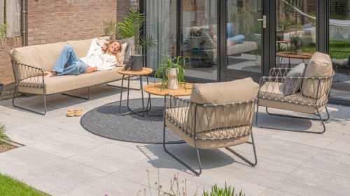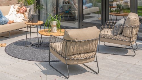 The Taste by 4Seasons Prego lounge is made with taupe rope and has a stylish anthracite frame, which is not only durable but also adds a contemporary touch to your outdoor space. With the included cushions, you can relax in luxury and comfort for hours.