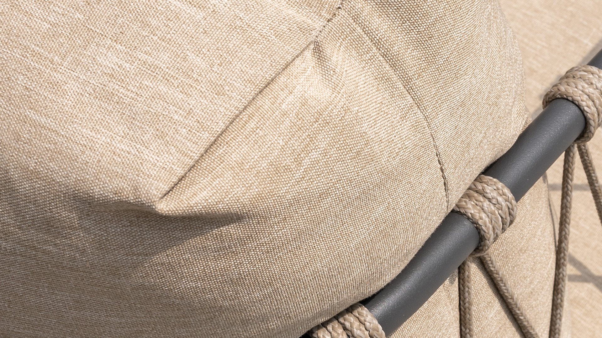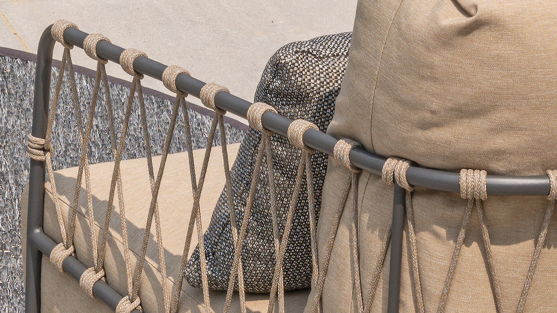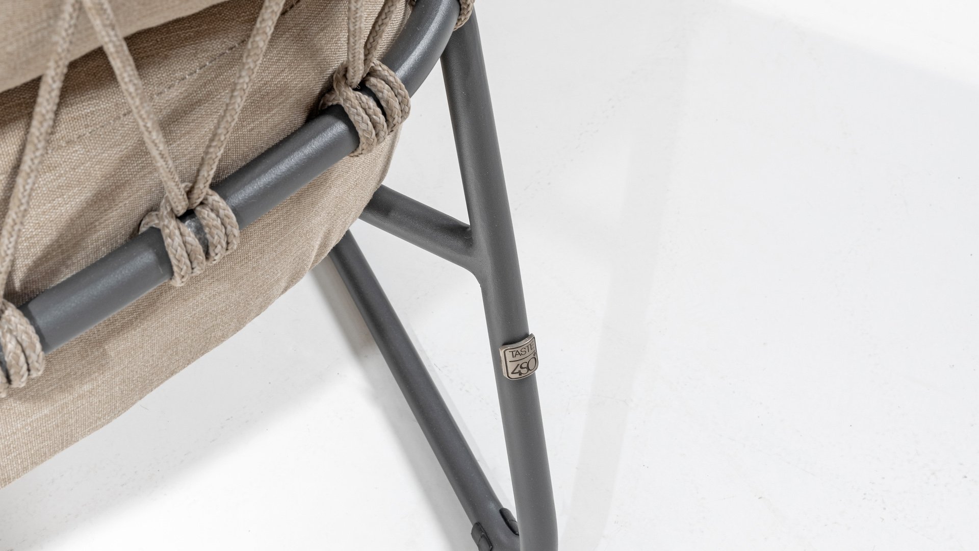 This beautiful material is perfect for outdoor use, because Taste Rope isn't just any shoelace. Taste uses very high-quality rope made from 100% SDP (Solution Dyed Polypropylene). This material is extremely strong and has very little stretch. Polypropylene is oil-based, so dirt and contaminants are virtually insoluble, just like our cushions. Taste offers exclusive designs using hand-woven rope patterns and techniques.