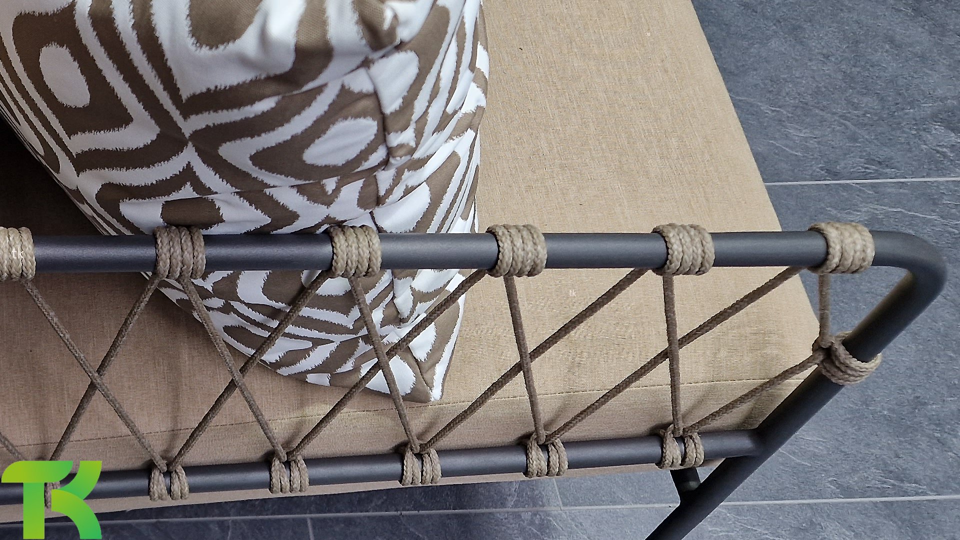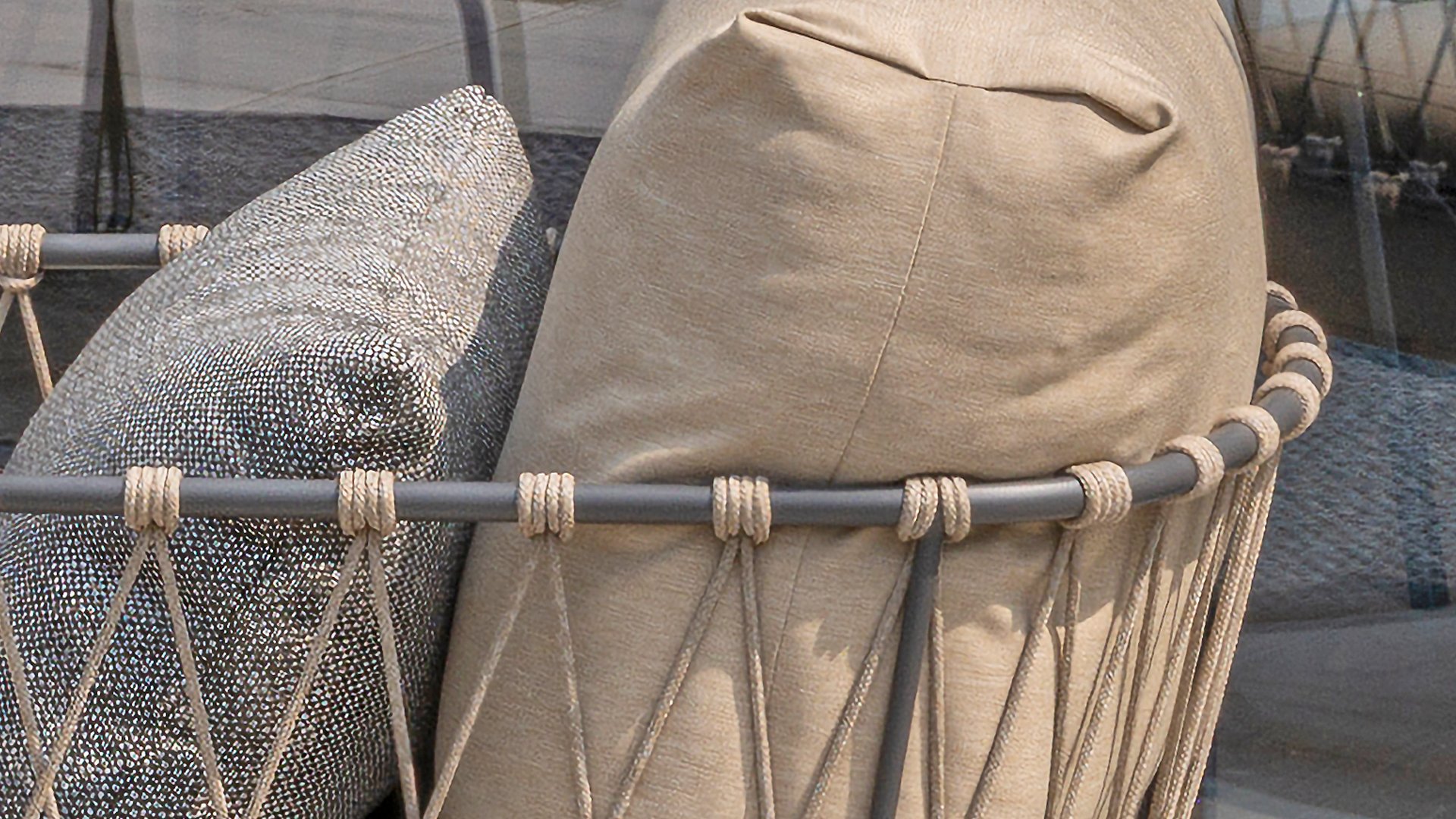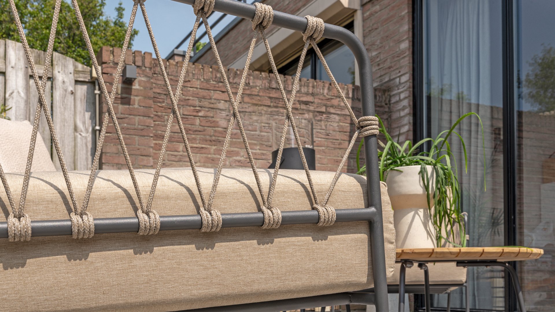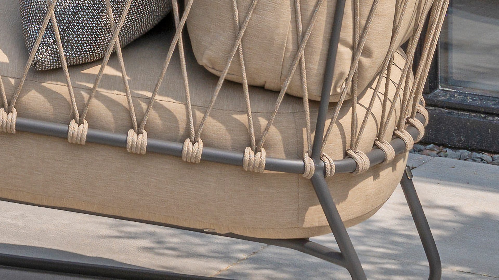 This beautiful material is perfect for outdoor use, because Taste Rope isn't just any shoelace. Taste uses very high-quality rope made from 100% SDP (Solution Dyed Polypropylene). This material is extremely strong and has very little stretch. Polypropylene is oil-based, so dirt and contaminants are virtually insoluble, just like our cushions. Taste offers exclusive designs using hand-woven rope patterns and techniques.