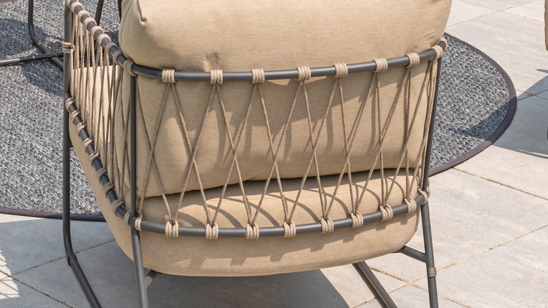 The Taste by 4Seasons Prego lounge is made with taupe rope and features a stylish anthracite frame, which is not only durable but also adds a contemporary touch to your outdoor space. With the included cushions, you can relax for hours in luxury and comfort.