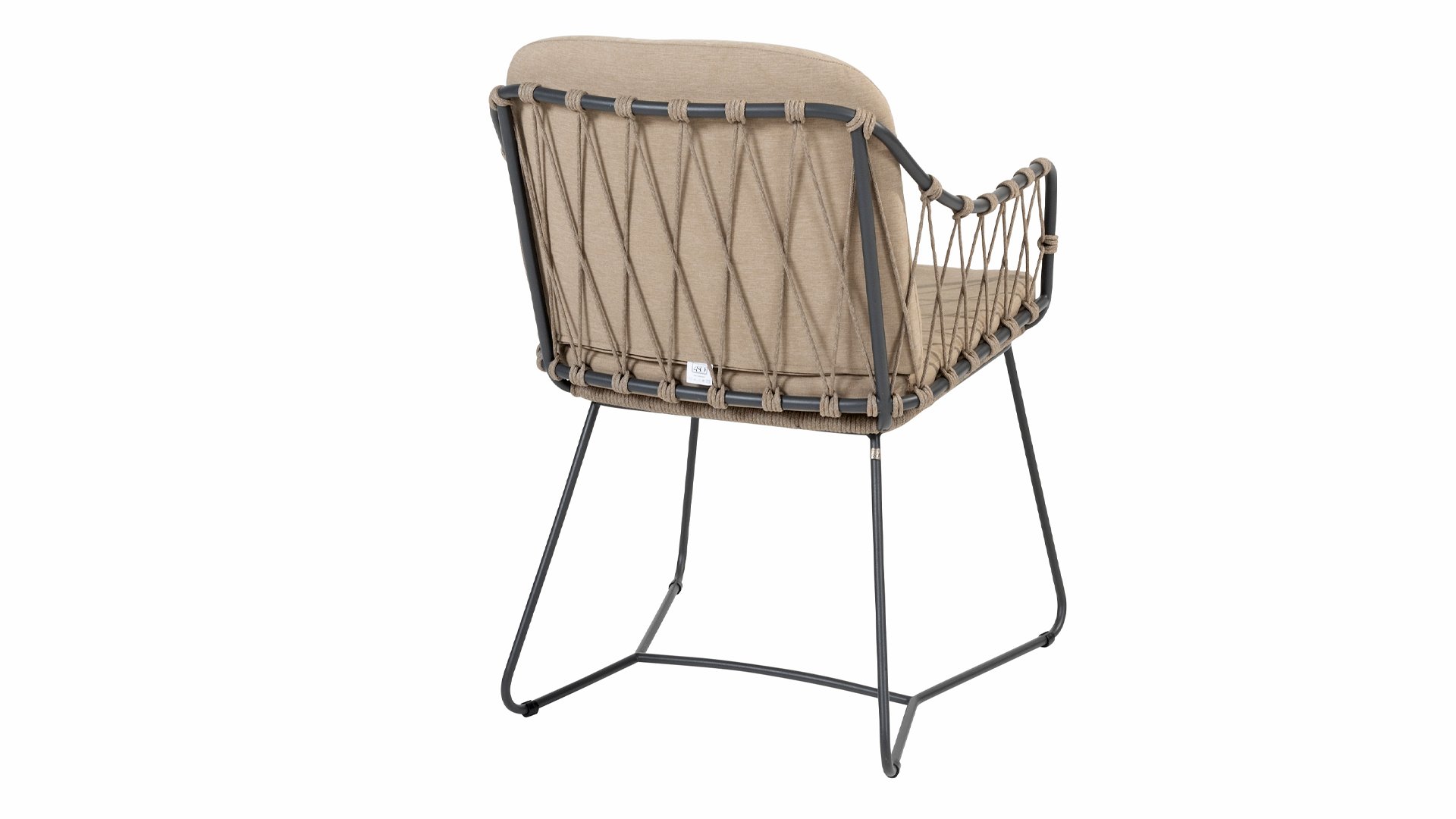 The Prego dining chair is made with high-quality taupe rope and has a sturdy frame of anthracite stainless steel and aluminum, making it resistant to changing weather conditions. The included cushions provide extra comfort during long, relaxed dinners or cozy gatherings outdoors.