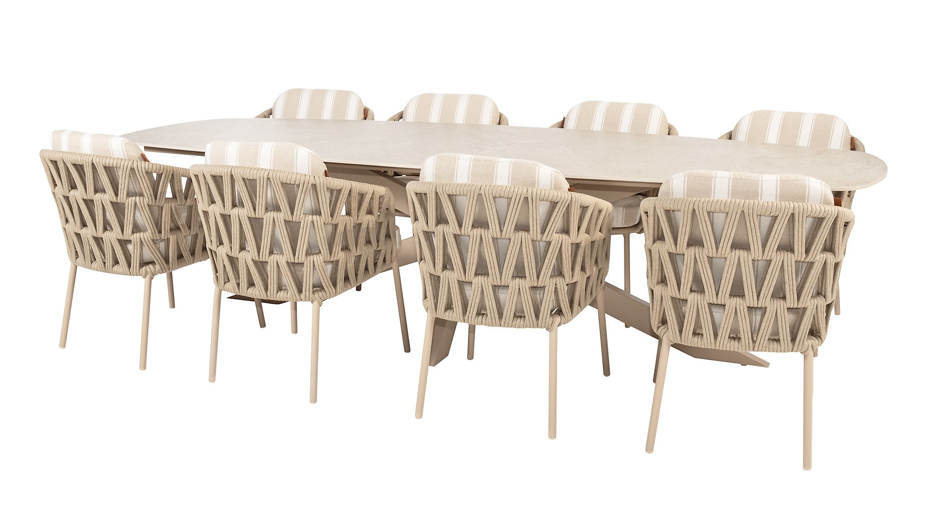 1 x Taste Prado Barrel tafel 300x110cm keramiek-alu latte