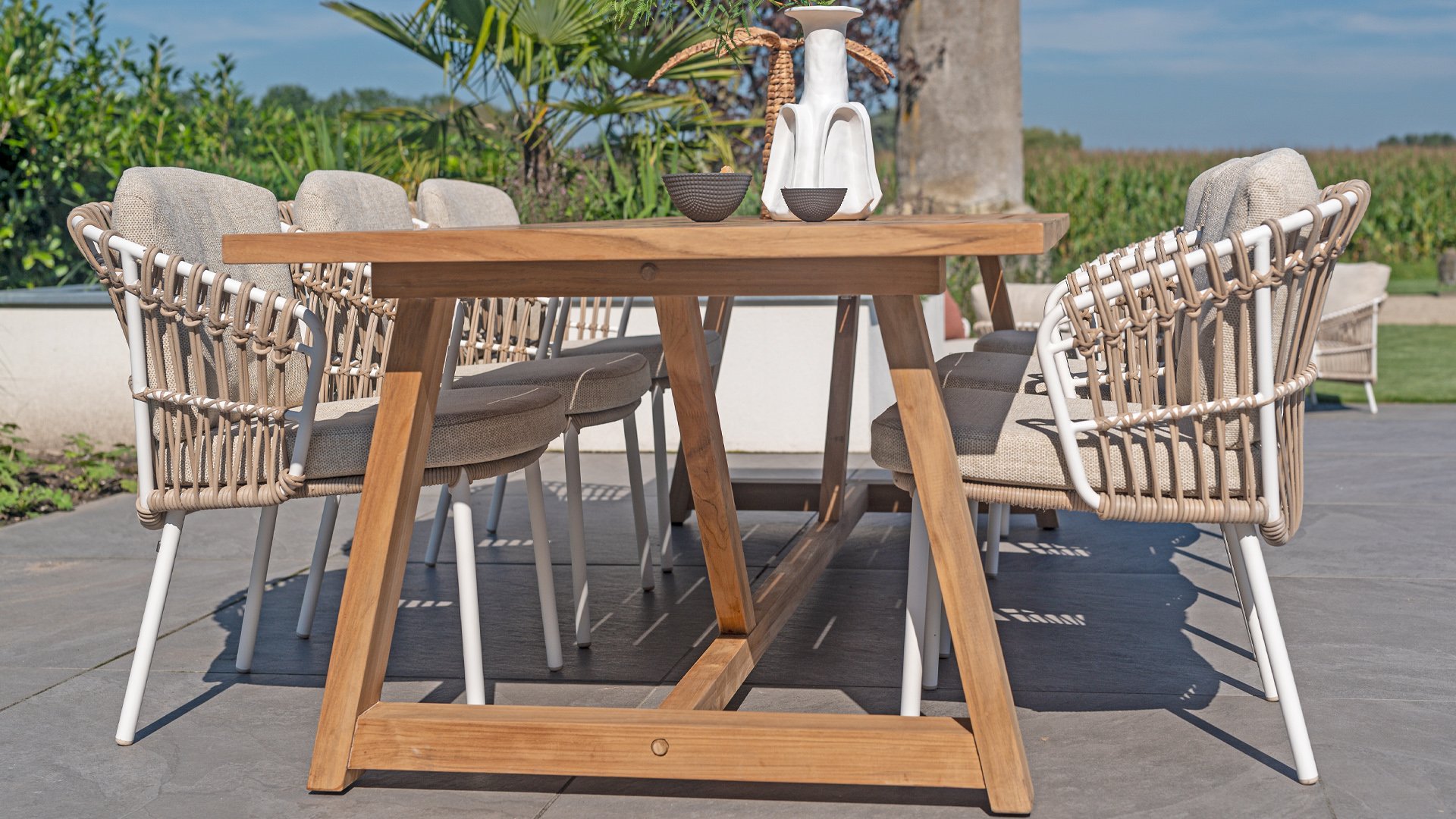 Met de 4 Seasons Outdoor Dalias dining stoel kunt u genieten van de perfecte combinatie van luxe en duurzaamheid. Tevens ook verkrijgbaar in lounge en low dining, bekijk ze hier: 4SO Dalias Lounge- en 4SO Dalias Low Diningset.