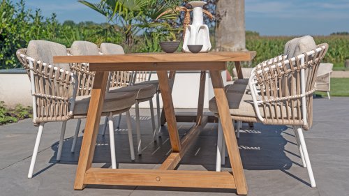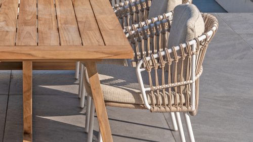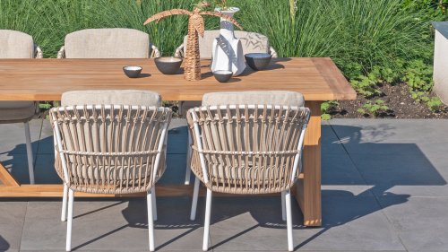 - Extreem comfortabel: De Dalias stoel biedt een buitengewoon comfortabele zitervaring, zodat u urenlang kunt genieten van gezellige diners in de buitenlucht.