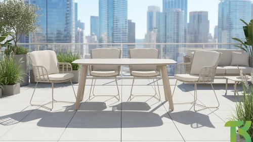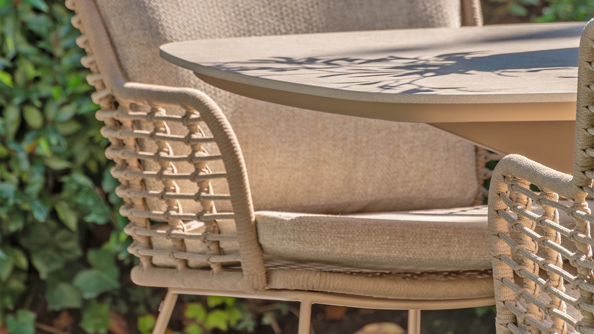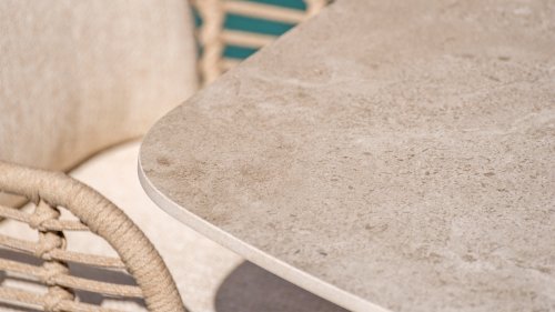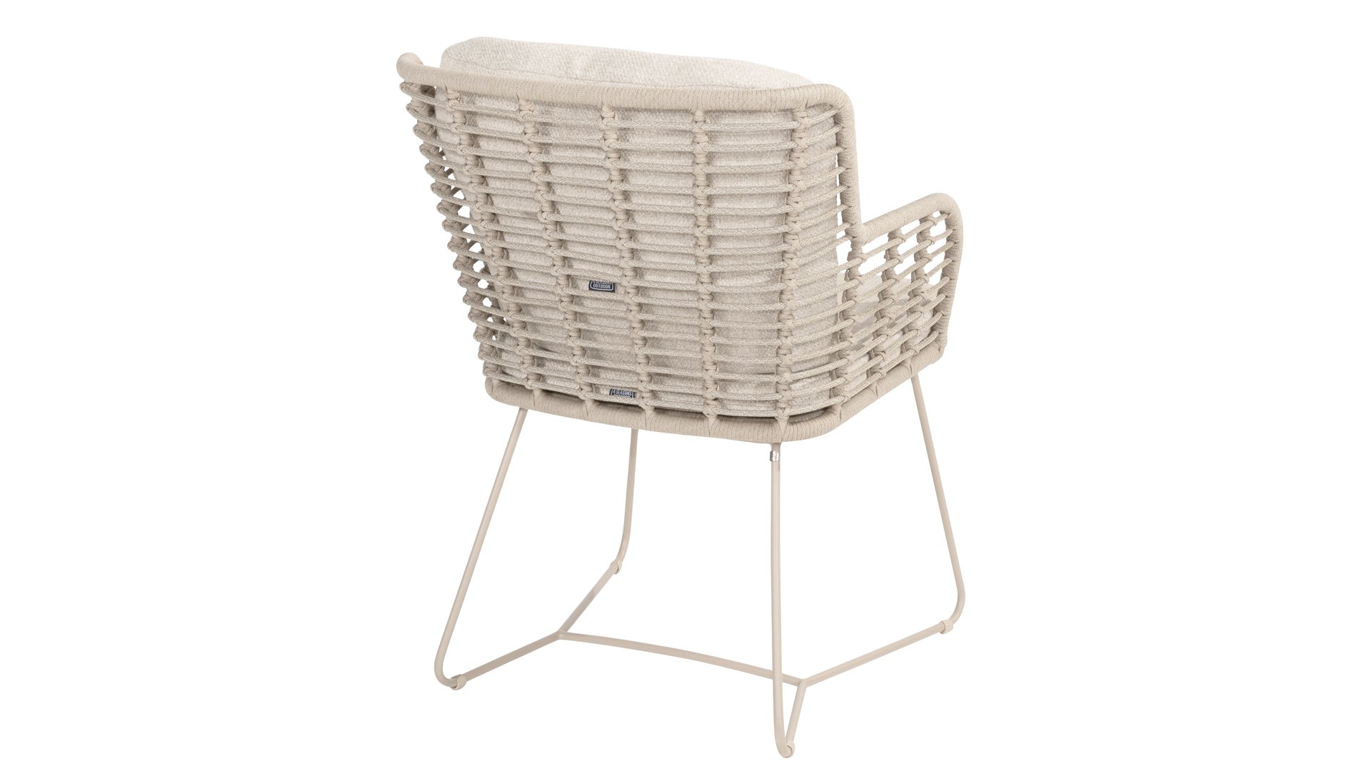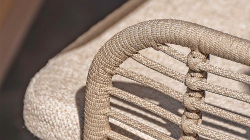 Door de veerkracht van het Rope materiaal en de fijne kussens ontstaat een subliem zit-comfort! De kussens hebben een Olefin hoes welke af te ritsen is en uit te wassen op 30 graden. Deze stof is zeer weerbestendig en duurzaam. Het onderstel is minimalistisch gevormd, maar van oersterk gepoedercoat RVS in een neutrale antraciete kleur. Het onderstel heeft een z.g.n. "slee-poot" vorm samen met het prachtige Latte kleurige Rope-draad geeft dit een modern maar toch warme uitstraling.