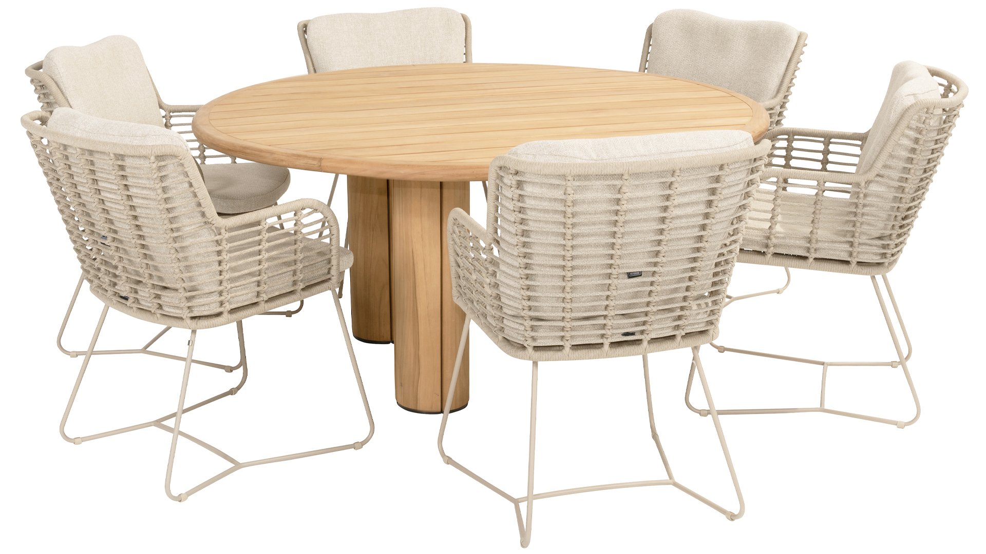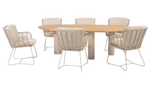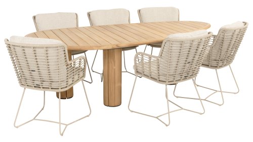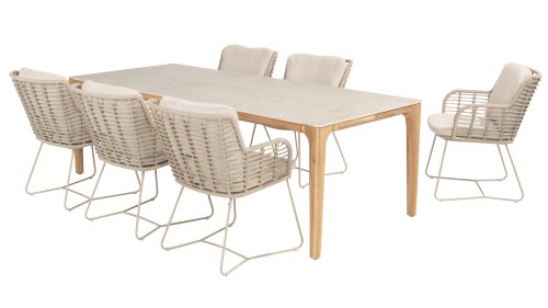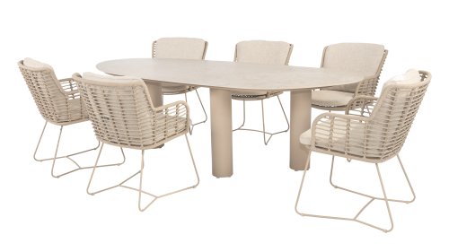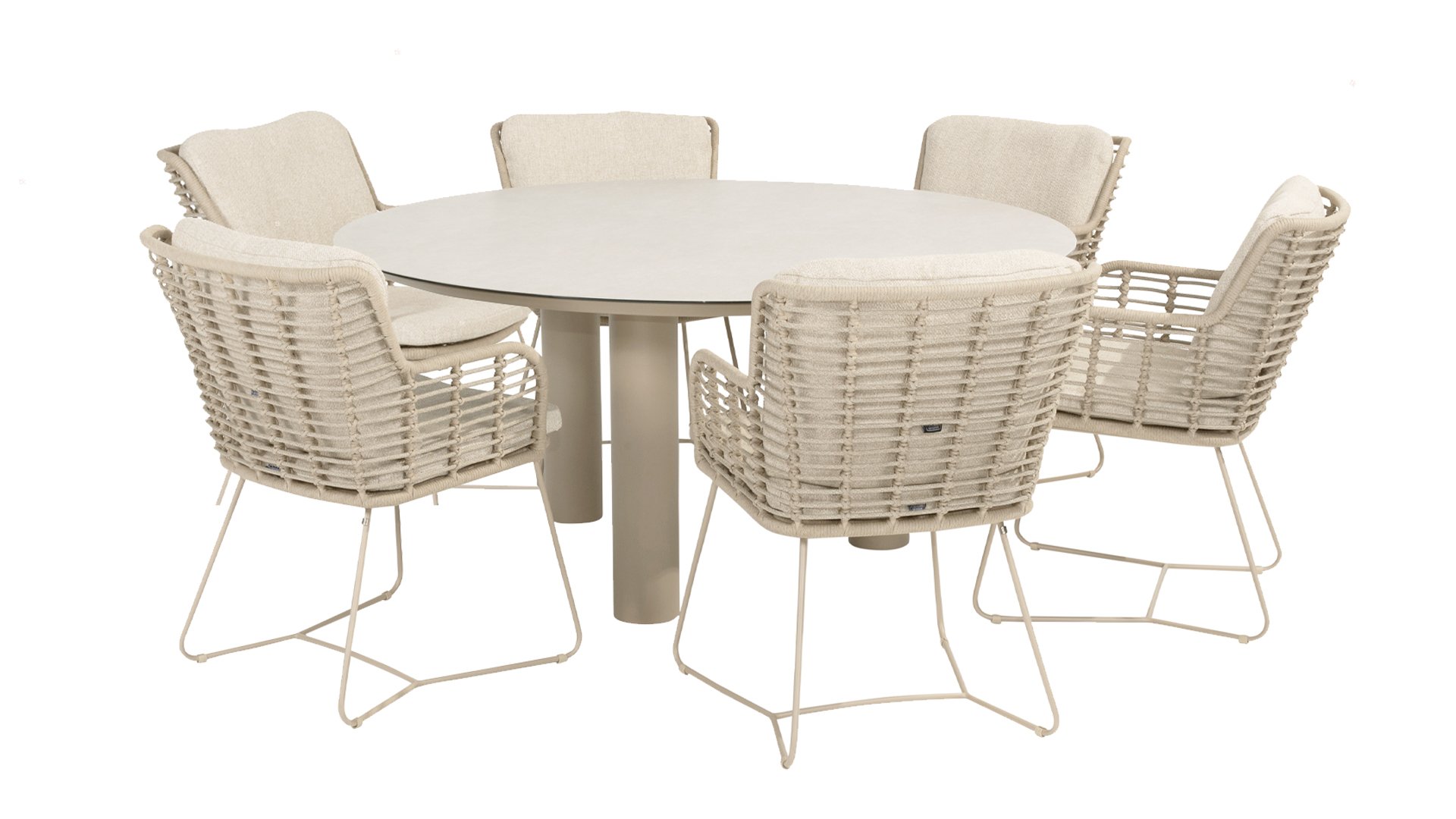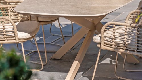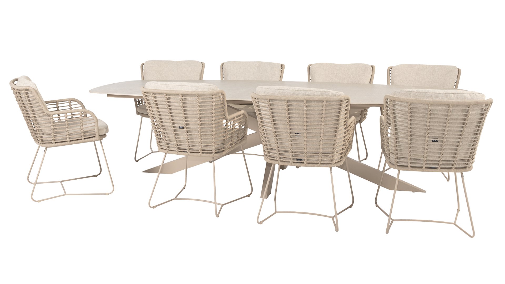 Gemaakt van de beste materialen, gemaakt met passie. Deze dining serie heeft niet alleen flair, maar ook een uitstekend zitcomfort. Het strak gewoven rope is gemaakt van kunststof rope wat een kern bevat, hierdoor is het kleurvast, schimmel- en UV-bestendig. De kussens zijn gemaakt van Olefin wat kleurvast, comfortabel en waterbestendig is. De combinatie van de kussens samen met een schuine rug zorgt voor een comforabele zit. Een design van 4 Seasons wat een lust voor het oog is. De stoel is ook verkrijgbaar in de volgende kleuren: Antracite, Latte en Terre. Het frame van de 4SO Fabrice Tuinset loopt strak en vloeiend in elkaar over en is afgewerkt met strak omvlochten Rope. Rug en zitting is gevlochten met dit sterke Rope en geeft een stevige maar comfortabele zit. Het frame vormt een speels en minimalistisch samenspel van vloeiende lijnen die samenkomen en weer uit elkaar gaan, een lust voor het oog!