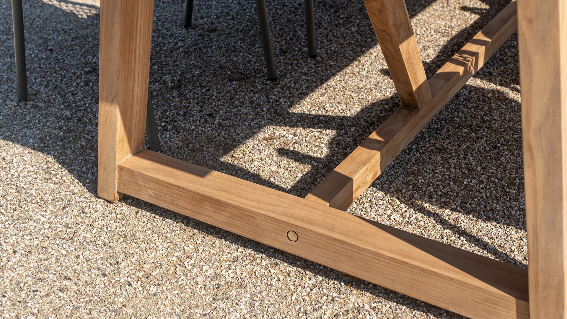 Teakhout is een natuurproduct en bijzonder geschikt voor buitengebruik. Het is bestand tegen ongedierte en schimmels en kan tegen zon, regen en sneeuw. Na verloop van tijd ontwikkelt het teakhout een zilvergrijze patina. Teakhout is een robuust materiaal en vergt weinig onderhoud. Als u de voorkeur geeft aan de originele kleur van het teakhout, kunt u eenvoudig voorkomen dat het hout vergrijst door regelmatig ons verzorgingsproduct te gebruiken. Teakhout kunt u ook reinigen met groene zeep. We geven garantie op alle productie en constructiefouten. De werking van teakhout is hier niet bij inbegrepen. Wanneer je kiest voor teakhout, verwachten we dat je deze eigenschappen waardeert. Haarscheurtjes die kunnen ontstaan, noesten in het teak en na verloop ruwe oppervlakken of onregelmatige verkleuringen zijn geen onderdeel van onze garantie. Deze eigenschappen geven het teakhout een eigen karakter en uitstraling zijn onderdeel van de natuurlijke eigenschappen. Wees voorzichtig met een bloempot of vaas op je teak tuintafel, hierdoor ontstaan er hardnekkige kringen of kleurverschillen. Imperfecties komen vaak voor, deze oneffenheden zijn kenmerkend voor dit product. Deze onregelmatigheden kunnen nooit aanleiding geven tot een claim, garantie of klacht. Dit is een teken van originaliteit!