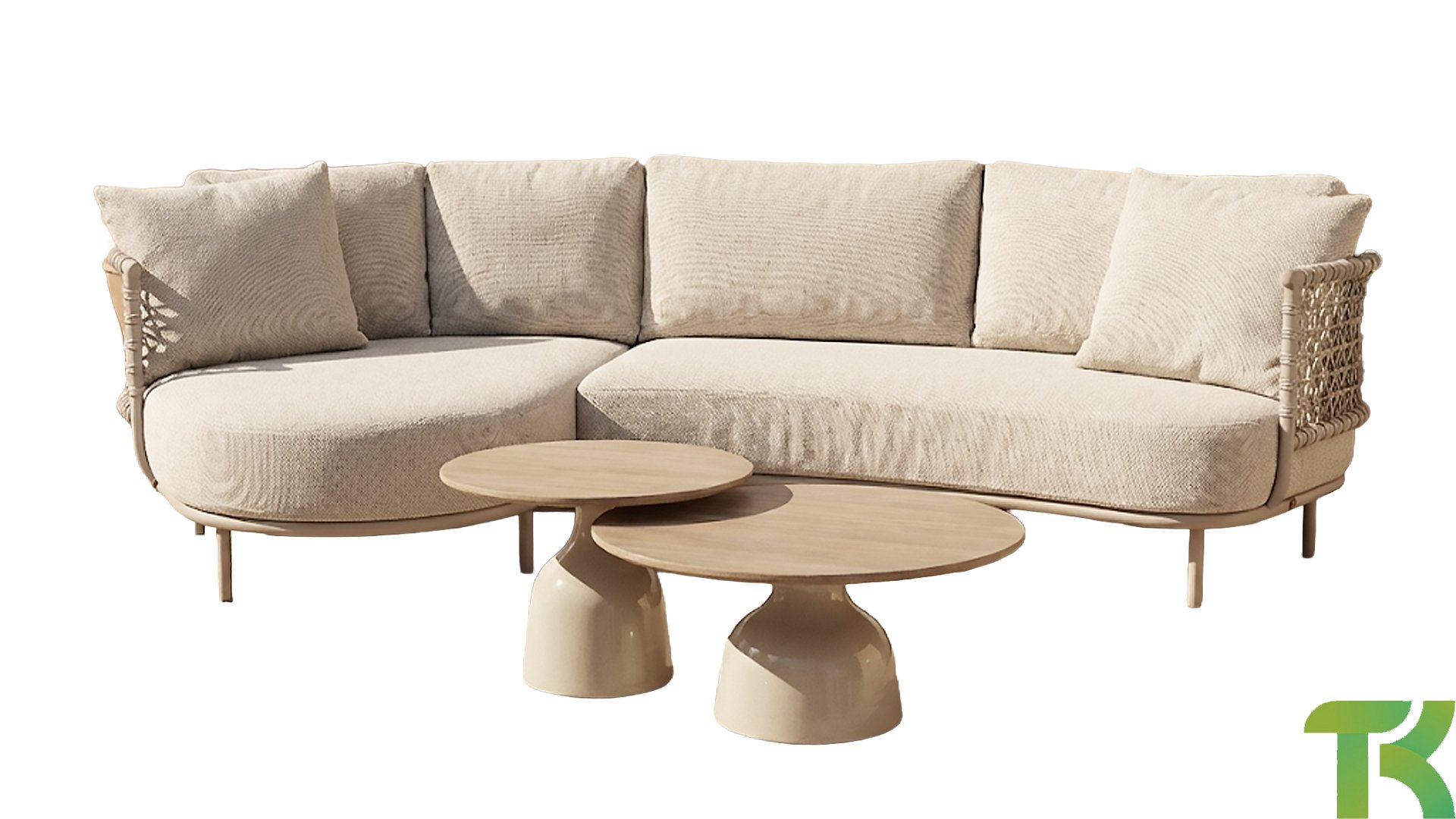 - Natuurlijke uitstraling: De latte rope bekleding geeft de bank een natuurlijke, warme en vriendelijke uitstraling, perfect voor een ontspannen buitenomgeving.