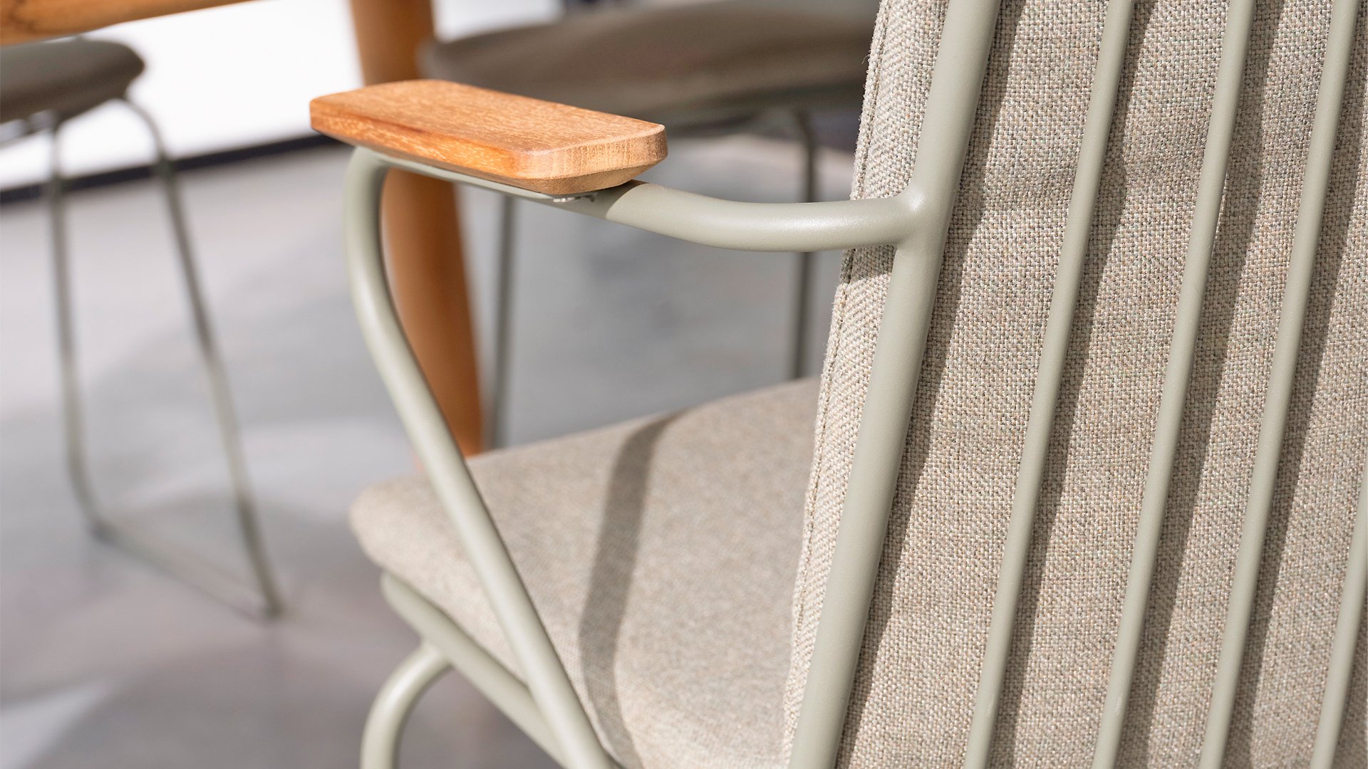 Er is niks zoals 4SO Veneto Uniek in zijn soort, de minimalistische Veneto dining stoel van dunne RVS buizen verkrijgbaar in de kleuren Antraciet, Terre & Olive. Een ergonomisch design, teak armleuningen en het kussen wat je makkelijk over de rugleuning schuift. Veneto is ook nog eens stapelbaar, werkelijk een one-of-a kind diningstoel.