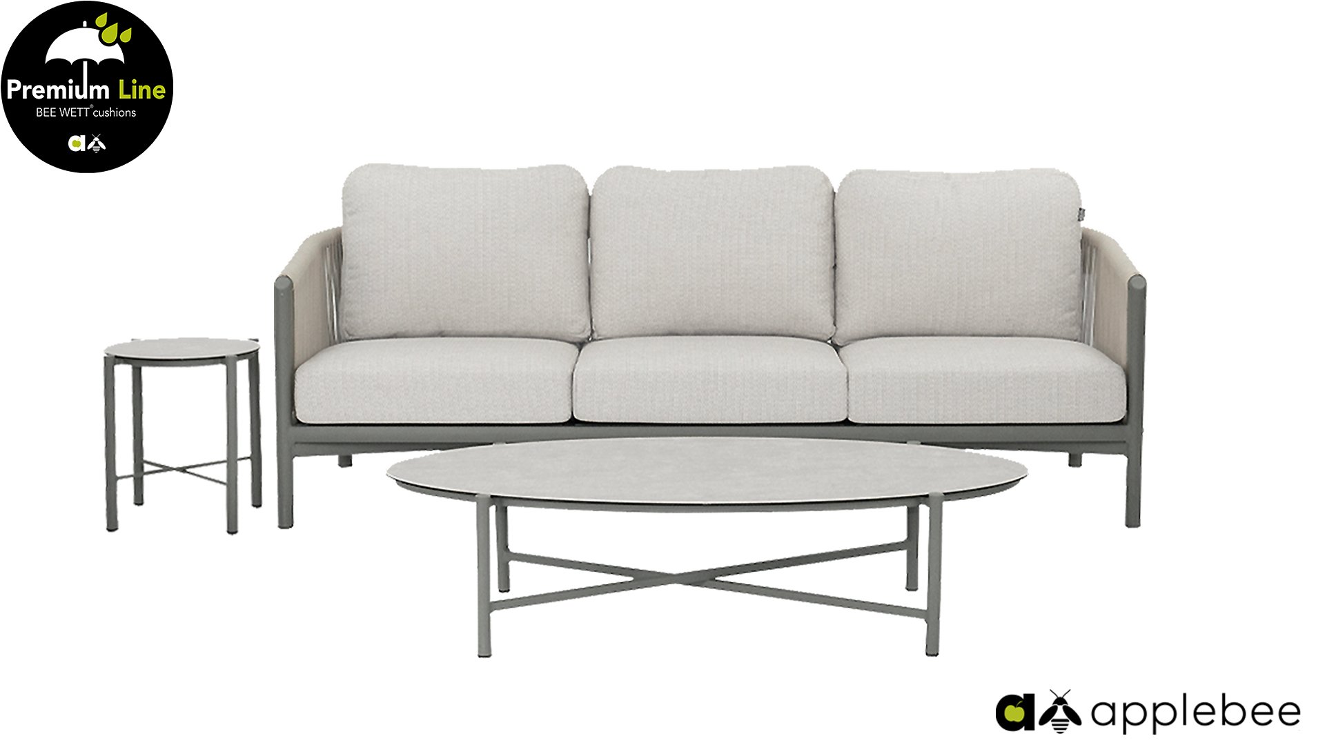 De Apple Bee Bora Bora Lounge collectie is minimalistisch, elegant en clean. Het kenmerkt zich door het tweelaags gevlochten rope, waar je doorheen kunt kijken. De fijne, gebogen vormen van dit meubel zorgt voor een strak maar toch elegant aanzicht. In combinatie het harmonieuze samenspel van de taupe kleuren en het rope is de luxueuze Bora Bora een prachtige toevoeging in de tuin. Uiteraard is deze lounge set ook weer uitgerust met de Bee Wett® kussens. Deze Bee Wett® kussens zijn speciale weerbestendige kussens. Het open weefsel aan de onderzijde van het kussen zorgt voor een perfecte drainage. Dit zorgt ervoor dat jouw Bee Wett kussen spectaculair veel sneller droogt dan andere kussens. Daarnaast is de stof bestand tegen rot en schimmels, Uv-bestendig, vochtwerend, zacht en comfortabel.