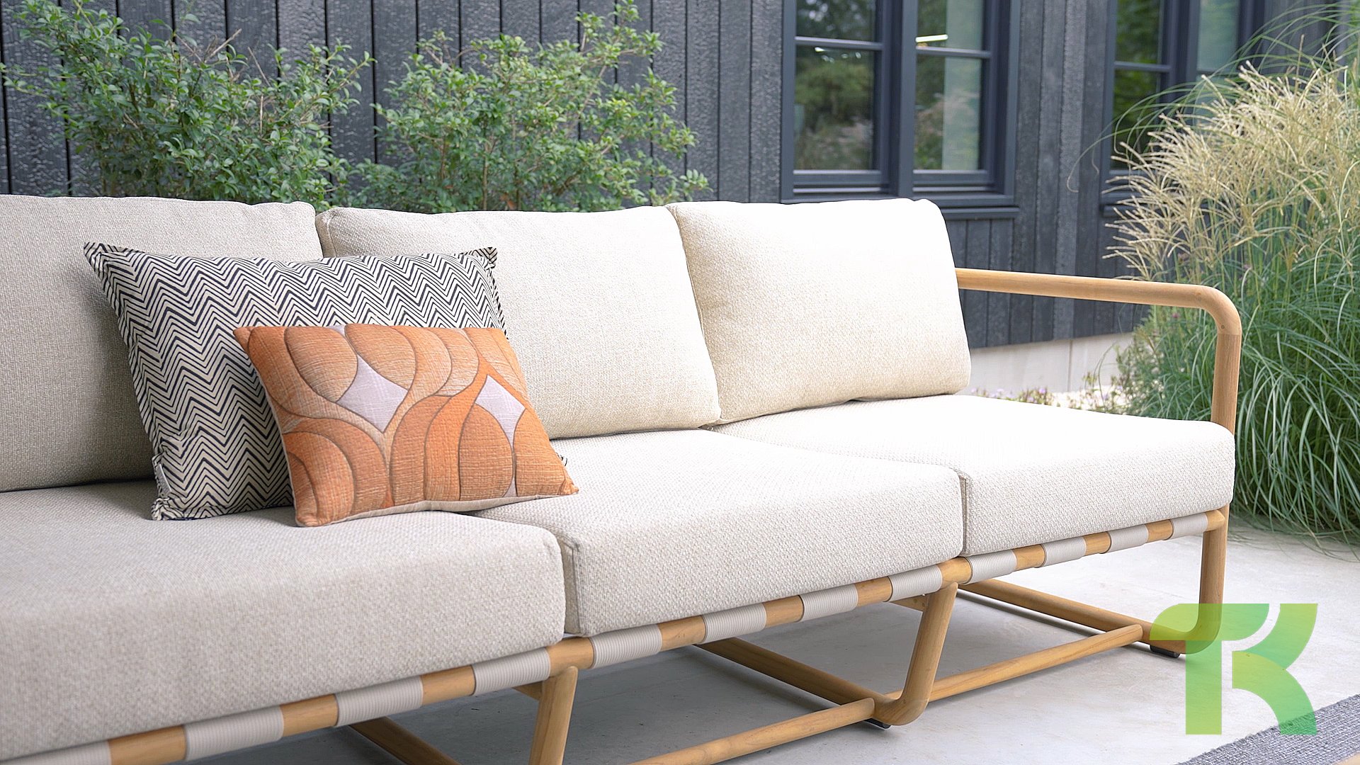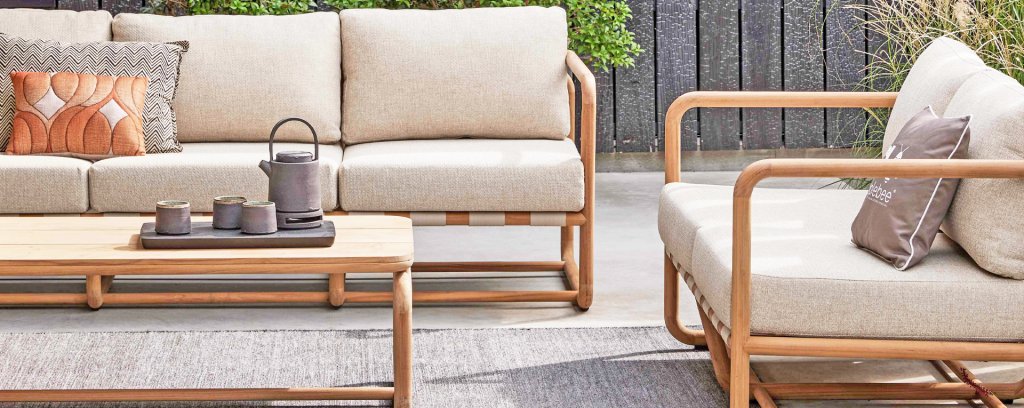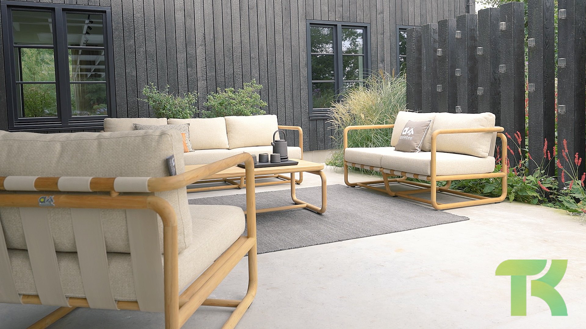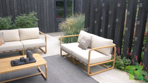 Dit ontwerp is geïnspireerd op de 70er jaren met de kwaliteit en het comfort van nu. Het grijpt terug op een traditie die we kennen van de manoumeubelen van weleer, waarin rond gebogen stokken werden toegepast. Zo ook bij de Dolce: ronde stokken, maar dan van hoogwaardig naturel teakhout, alle hoeken in het ontwerp zijn afgerond, de banden die de kussens dragen zijn rondom het frame geslagen en in het zicht gelaten voor een speels effect. De Dolce collectie is een natural teak beauty waarvan het ontwerp afgeronde lijnen heeft.