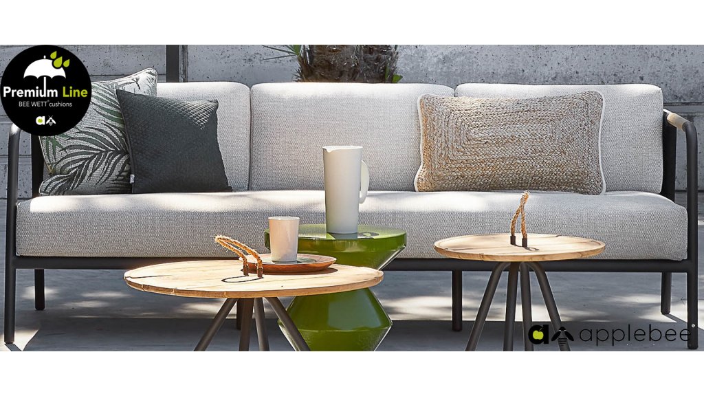 Bij de Premium Line zijn de kussens voorzien van Bee Wett® technologie, wat ervoor zorgt dat de kussens weer snel droog zijn na een fikse regenbui. U kunt de kussens dus gewoon buiten laten liggen. De drainage aan de onderzijde van het kussen zorgt er namelijk voor dat het water de kussens eenvoudig kan verlaten. In het royale formaat kunt u verdwijnen in luxe en comfort. De Apple bee Elle loungeset is daarmee uitermate geschikt om écht te loungen.