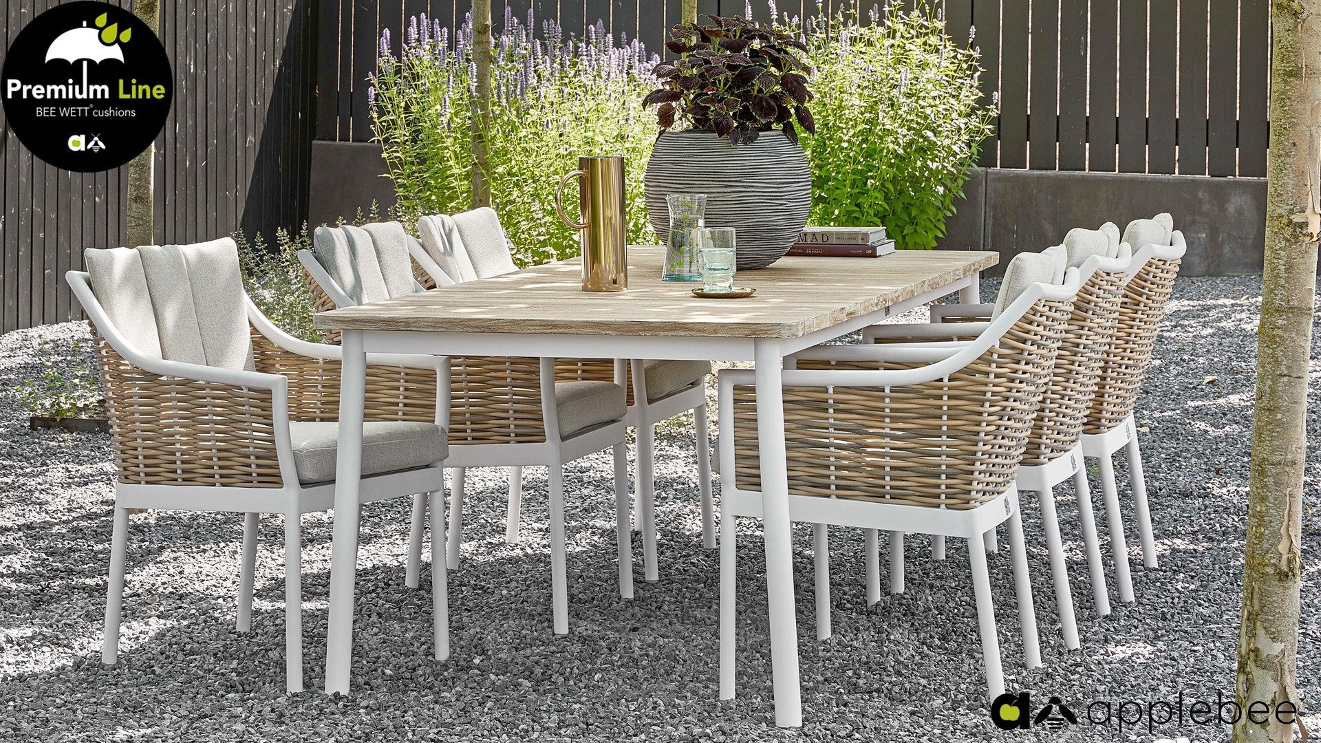 De visie van AppleBee is om consumenten zo lang mogelijk te laten genieten van hun tuinmeubelen. Daarom hebben alle AppleBee producten een garantie van 3 jaar met uitzondering op de onderhoudsproducten.