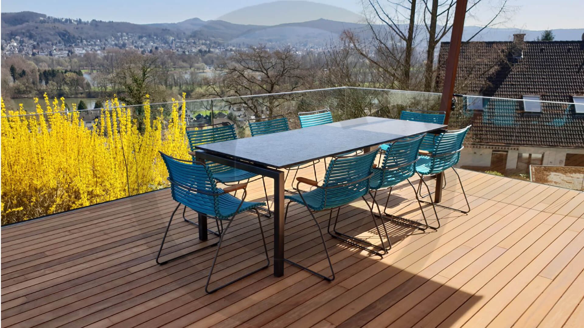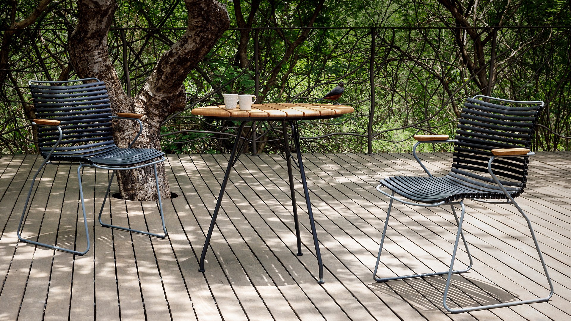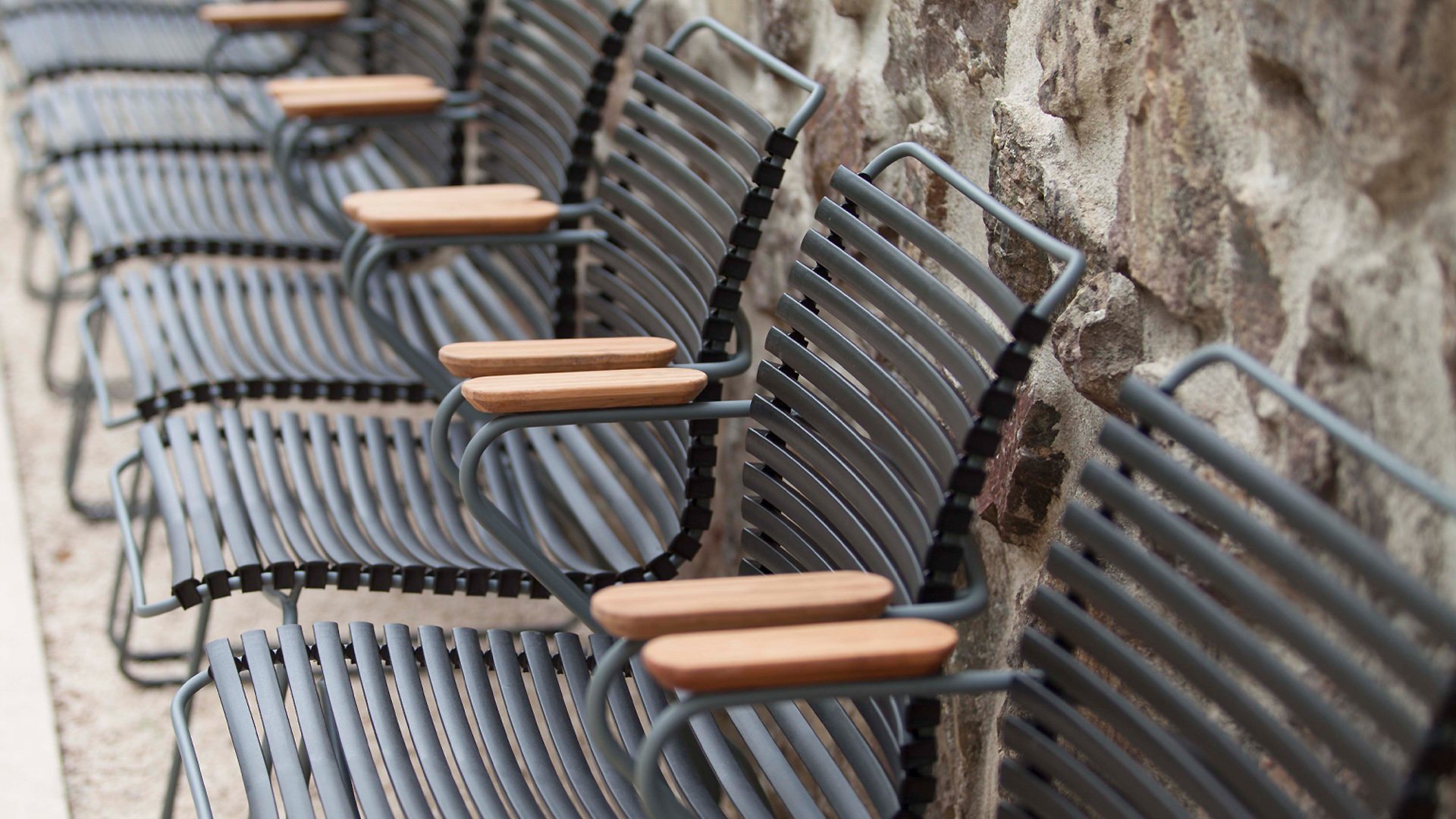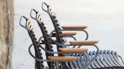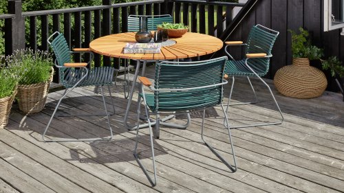 De HOUE Click Dining collectie van Houe bestaat uit een aantal fraaie en vrolijke items. Denk aan de armstoel, dining stoel en dining armstoel met hoge rug. De armleggers van deze items zijn gemaakt van bamboe, een lichtgewicht en tevens sterk houtsoort. Het tuinmeubilair is speciaal gemaakt voor iedereen die ervan houdt om zijn of haar inrichting en meubilair van tijd tot tijd een nieuwe uitstraling te geven. Hoe dat precies kan? Het tuinmeubilair uit de HOUE Click collectie is gemaakt met lamellen in verschillende kleuren. Omdat deze lamellen gemakkelijk los en vast te maken zijn, kun je jouw HOUE Click meubilair naar eigen inzicht vormgeven. Combineer gerust want je beschikt over een uitgebreid kleurenpalet aan tinten waarmee je oneindig veel combinaties kunt maken.