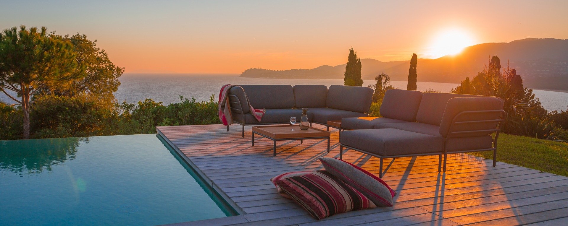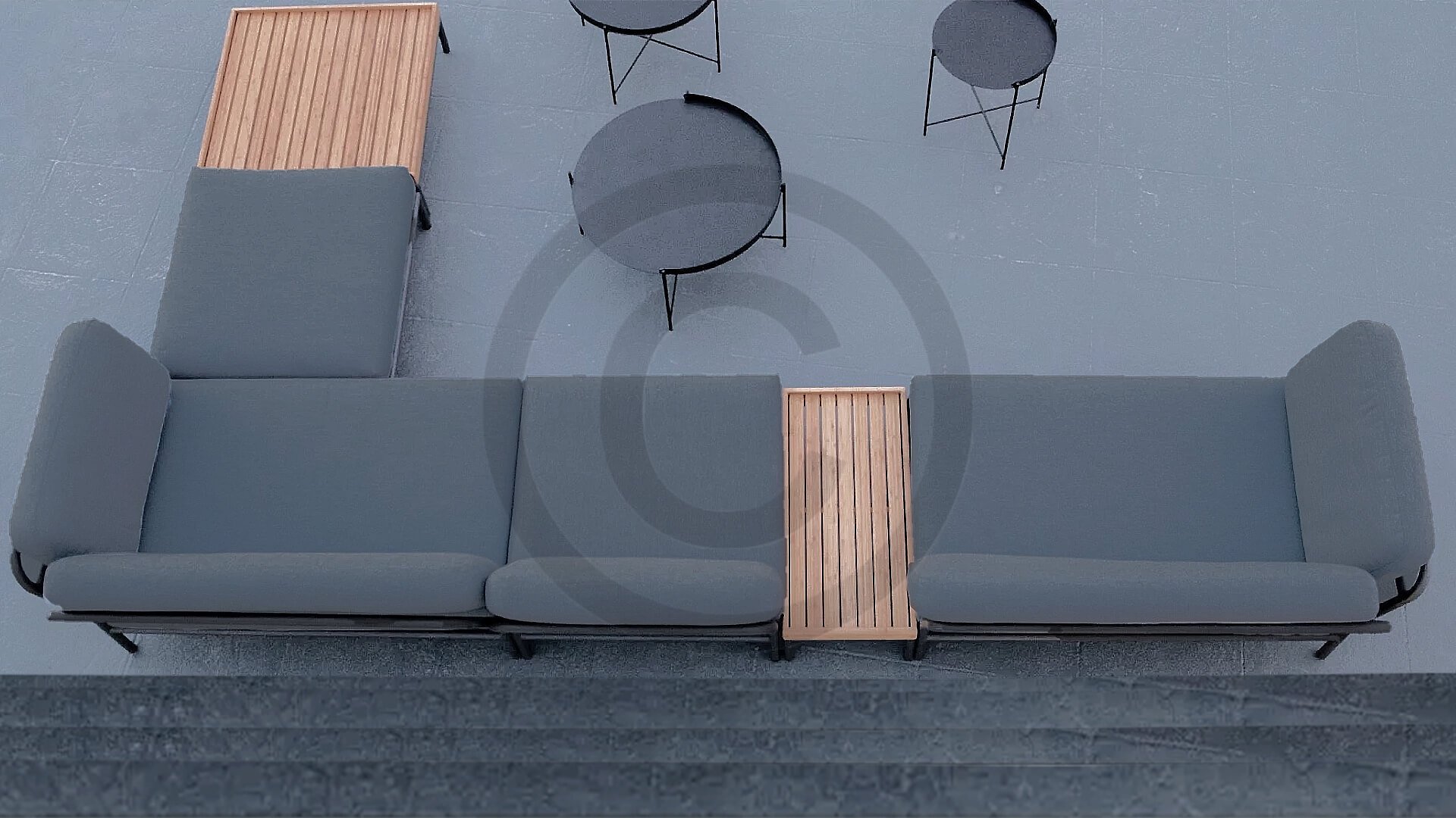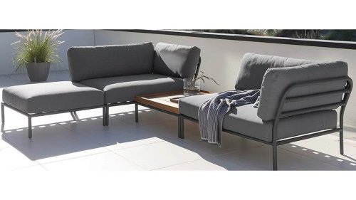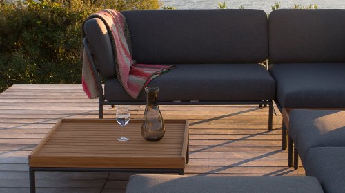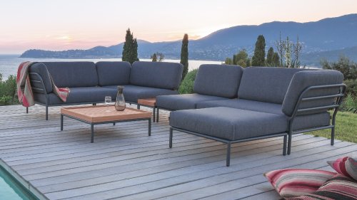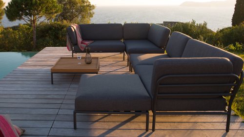 De verschillende elementen van deze collectie kunnen op verschillende manieren met elkaar worden gecombineerd, wat resulteert in een hoogwaardige loungehoek op uw terras. De bankmodule is gemaakt van gepoedercoat aluminium en heeft kussens van waterafstotend, donkergrijs materiaal. Deze ruime, zachte loungeset schreeuwt om zon, boeken en een drankje. En het allergrootste pluspunt? Ook met zijn tweeën kun je comfortabel liggen, omdat er kussens aan de armleuningen bevestigd zijn. Kies dus je lievelingskant, en het genieten kan beginnen.