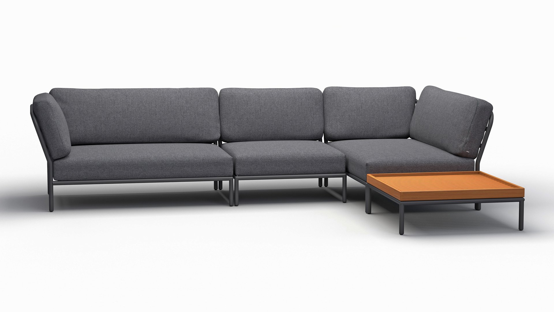 Houe Level Lounge is een modulair (zelf samen te stellen) lounge combinatie voor buiten. De Level lounge bestaat uit verschillende elementen, waardoor er vele combinaties mogelijk zijn. Het frame van de lounge is van aluminium en heeft een uitstekende poedercoating. De kussens in de lounge zijn voorzien van een speciale outdoor stof met een basis van Quickdry foam. Hierdoor zijn de kussens in een mum van tijd weer droog en ontstaat er geen schimmel. De stoffen zijn eenvoudig te reinigen met een mild reinigingsmiddel. De kussens zijn uitritsbaar en wasbaar op 30 graden.