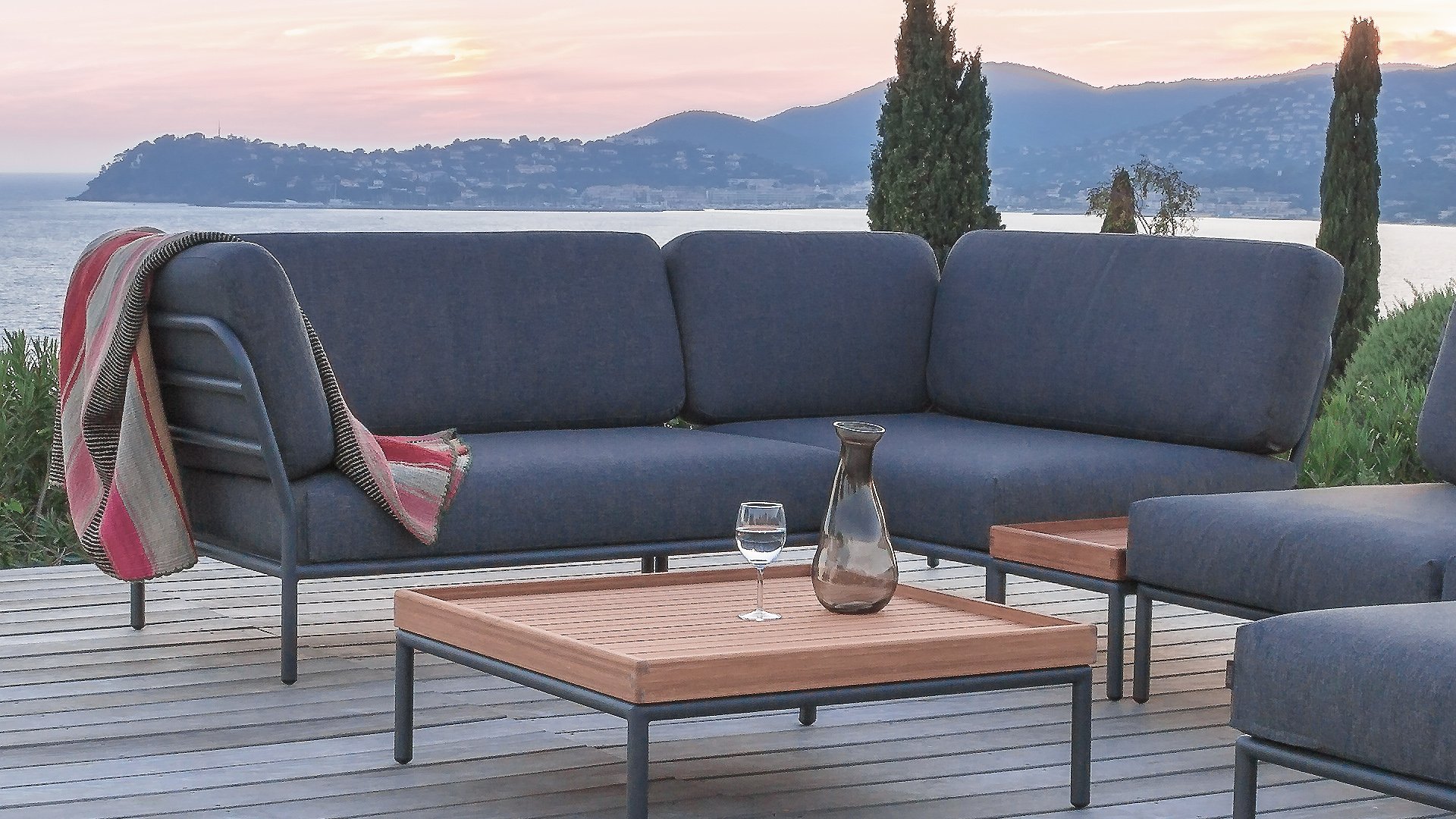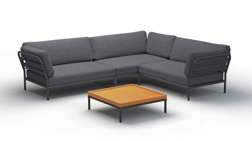 De Houe Level Lounge, ontworpen door Henrik Pedersen. Het draait allemaal om niveau, om oog in oog komen te staan met de natuur, om je te verhouden tot de horizon en lijnen en vormen naar een hoger niveau te tillen! Het lichtgewicht frame en de zachte kussens creëren zowel contrast als comfort - en lokt met een ontspannen loungesfeer. HOUE LEVEL is een loungeserie bestaande uit 2 bankmodules - een links en een rechts - een enkele stoel, een poef, een salontafel en een bijzettafel, waardoor het mogelijk is om de modules op veel verschillende manieren te combineren.